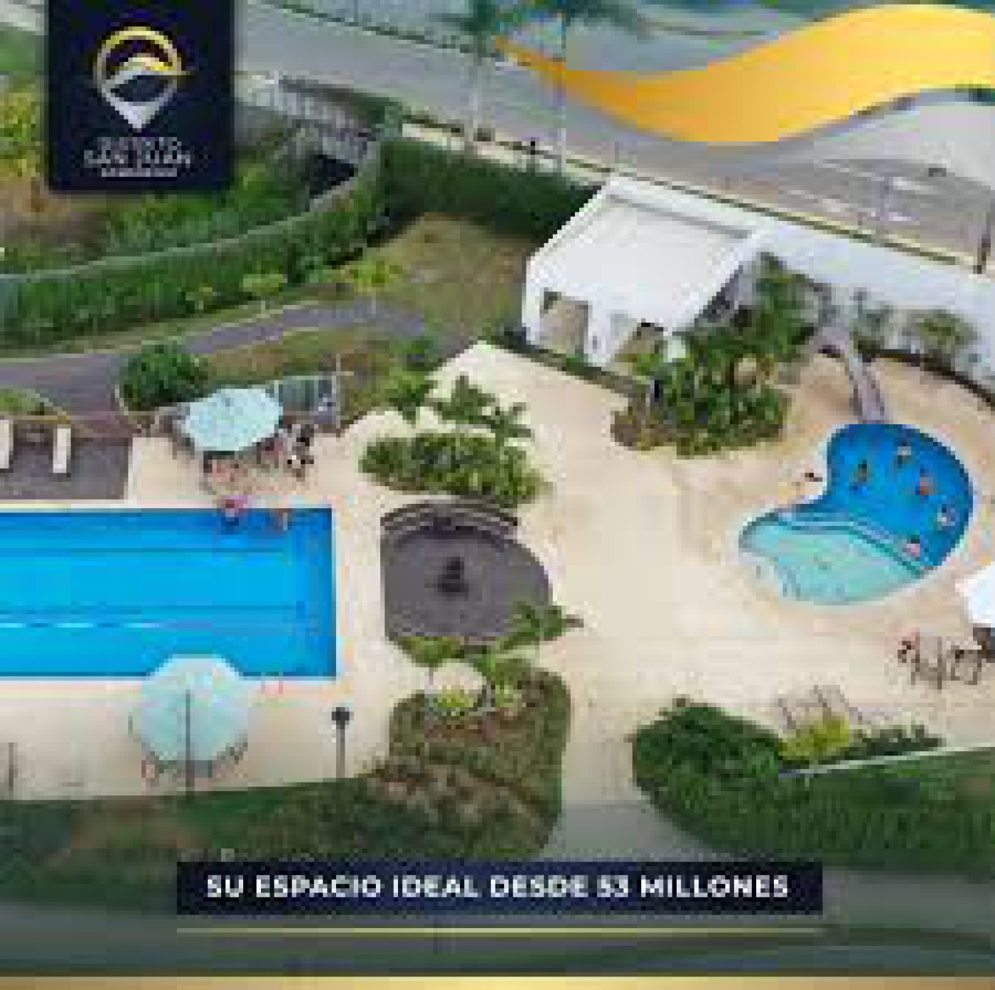 Descripción: Condominio con amplias zonas verdes, piscina con espacio para