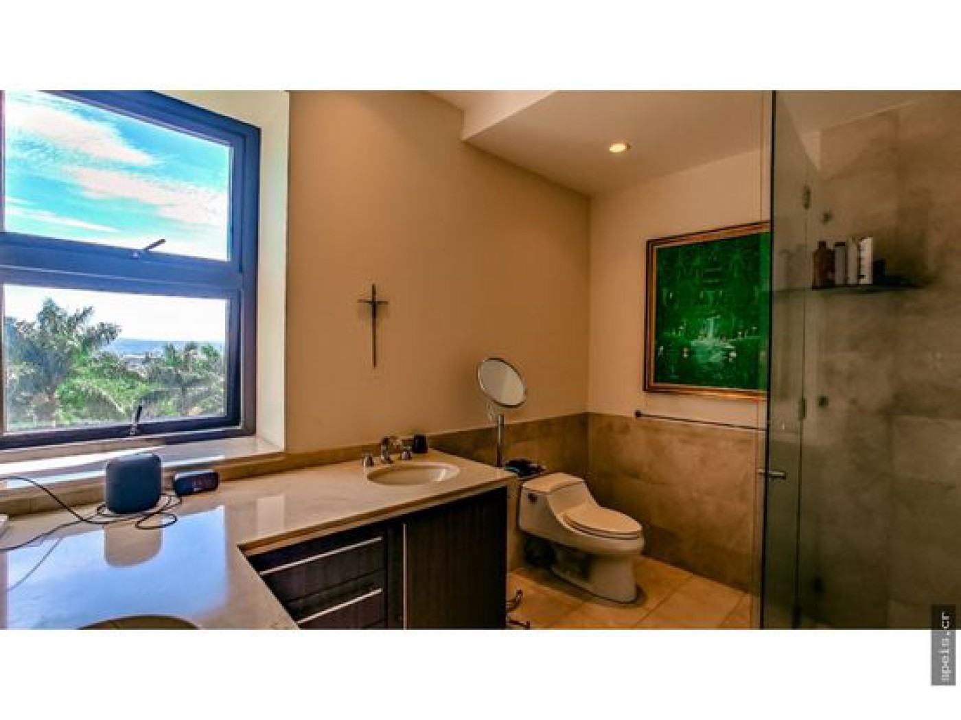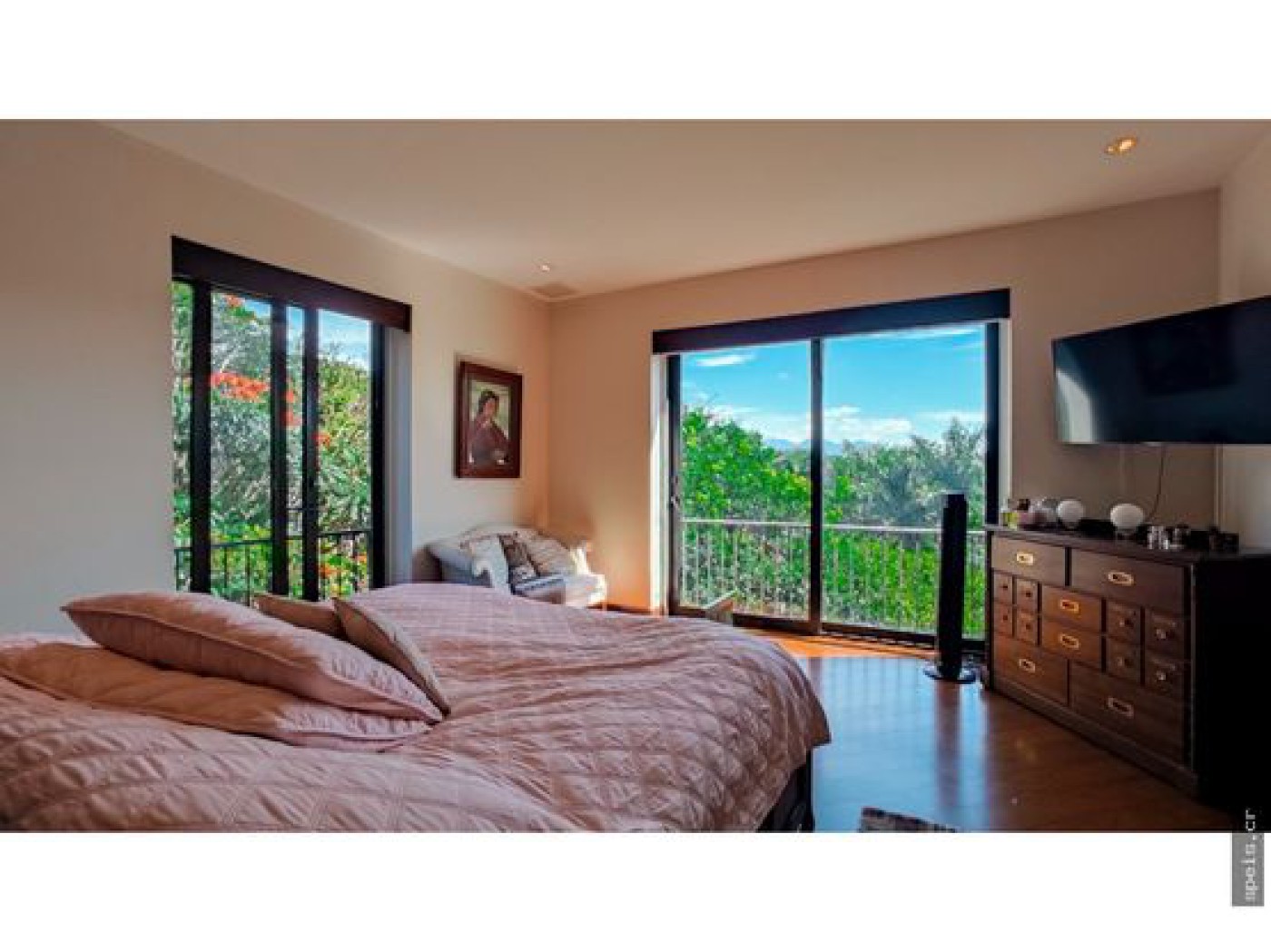 you can listen to ambient music through the audio system of speakers. This property offers three rooms,