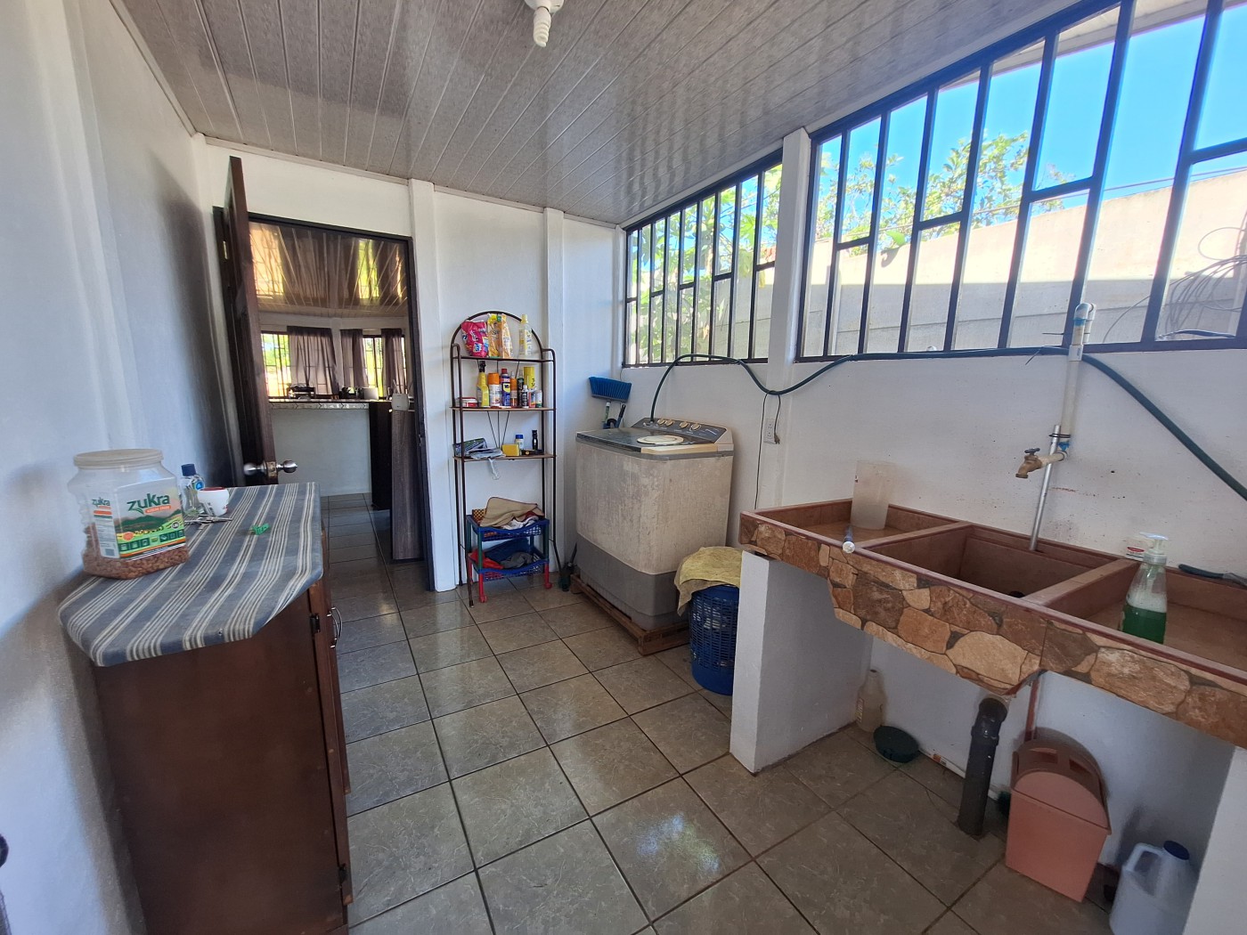 It has 3 bedrooms, 1 bathroom, living room, kitchen, garage for two vehicles, laundry room and