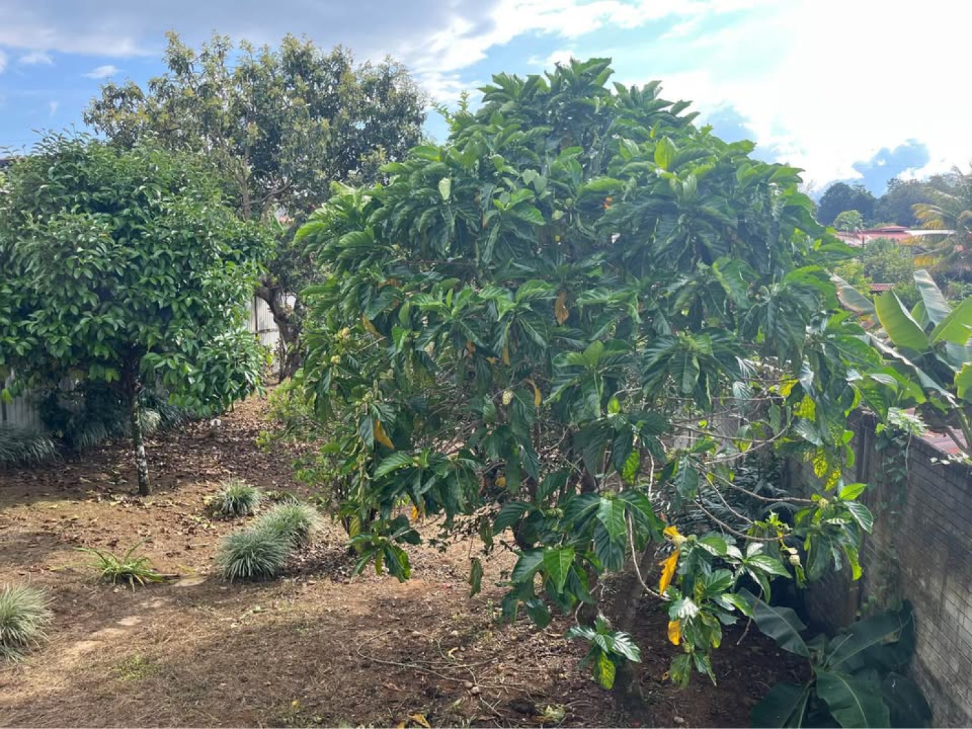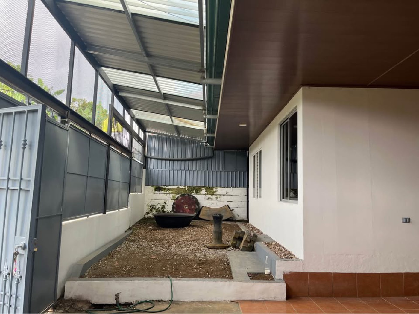 2 bedrooms, 2 full bathrooms, living room, dining room, kitchen, spacious garage for 2 cars, spacious laundry room, large backyard with exotic fruit trees such as mangosteen tree, avocado tree, 3 varieties of sour lemon trees, sweet lemon tree, noni tree, tropical and fragrant flowers. With perimeter wall, very safe. Requires remodeling. It already has a new false ceiling, new zinc and new electrical system.