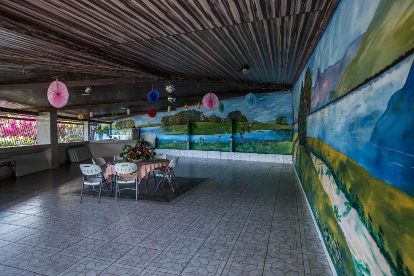 - Buildings: Two houses, two storage units, one apartment, and a party hall
