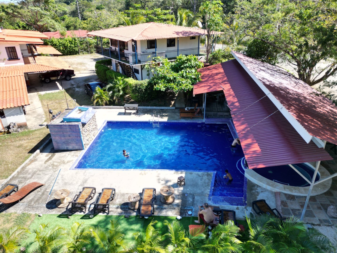Property details: - Location: San Francisco, Santa Cruz, Guanacaste, Costa Rica - Size: 2,500 square feet - Features: - 8 fully equipped rental rooms - Swimming pool - Restaurant - Local space for business - Apartment on top