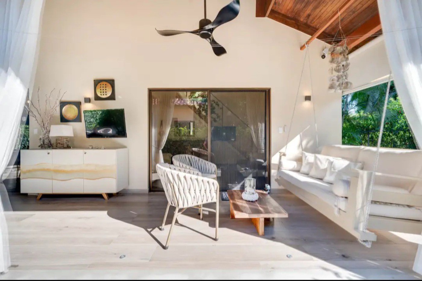 - Covered terrace, BBQ area, romantic swing, and mango tree shade