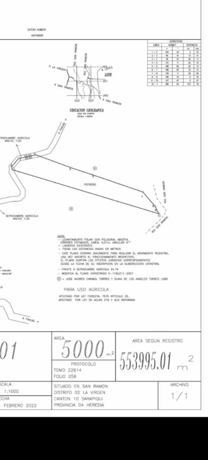 For Sale â€` Plot of Land Location: San Ramón, SarapiquÃ, Costa Rica Price: USD $20,000