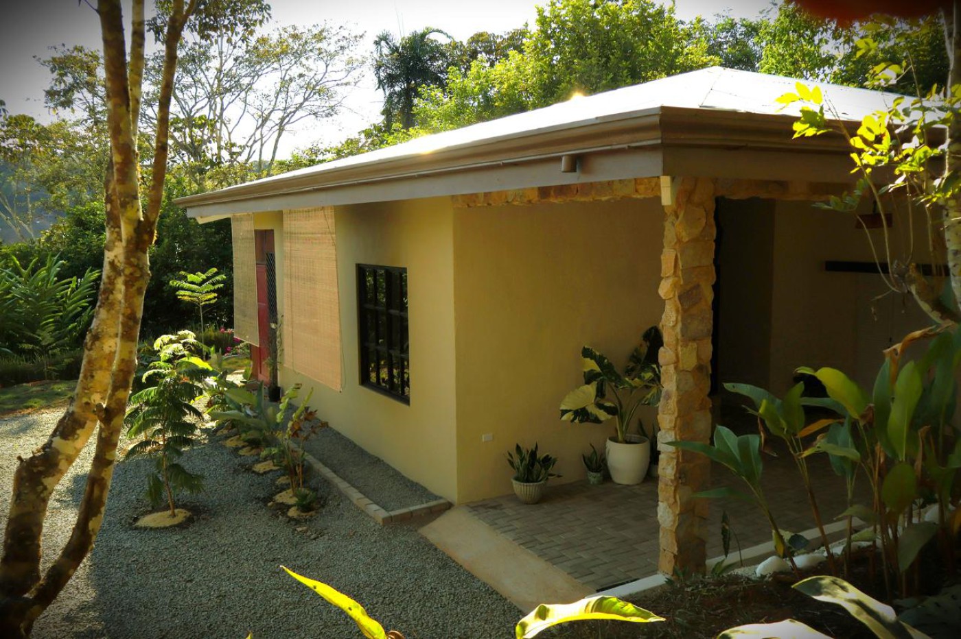 Enjoy fresh mountain air, low humidity, and a private setting in Quebrada Honda. The home showcases cobblestone floors, teak wood beam lighting, and handmade hardwood elements. Fruit trees and expansive gardens enhance outdoor living and tranquility.