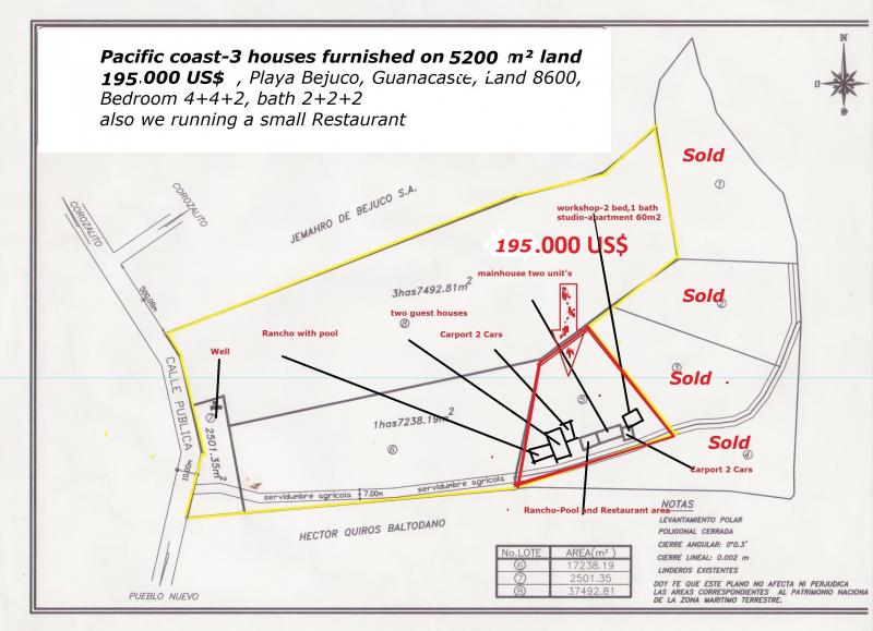 195.000 US$ , Playa Bejuco, Guanacaste, Land 5100, Bedroom 4+4+2, bath 2+2+2