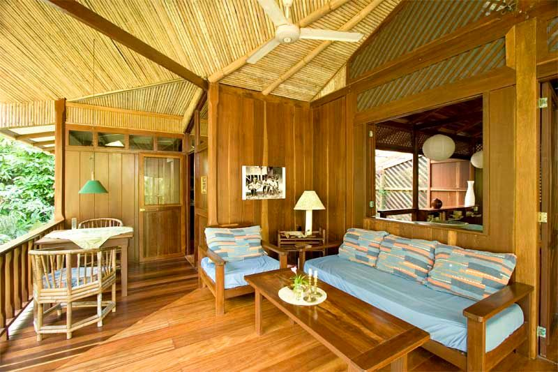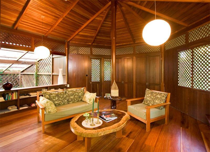 constructed of tropical hard wood on a cement. It has 2 separate unites, which can be