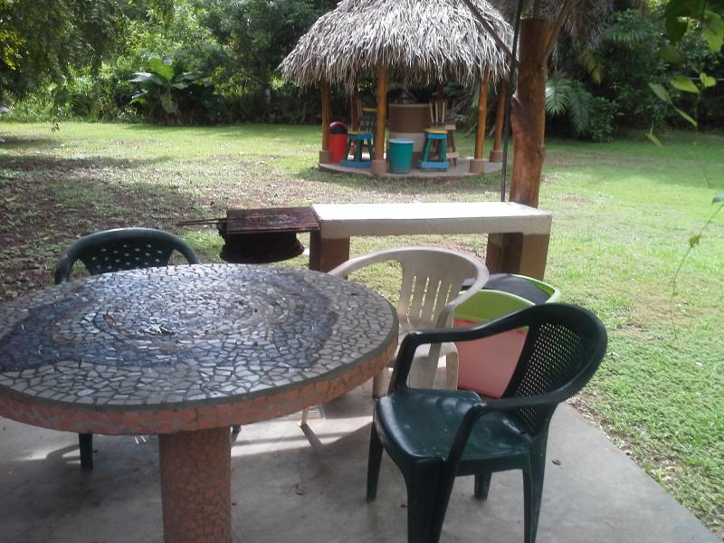 Plantation style hotel, water park. It can be used as a family home also. Day pool rates. 4, 300 m2 land area. And living area 450 m2. 4 cabanas with full kitchens sleeping 21 guests. 10 restrooms and 10 showers. Very large pool, child pool and jucuzzi. Small restaurant, bar. Owners appartment has AC. 12 coverd ranchos with BBQ. Lots of room to buil more ranchos and cabanas. 400 meters from the unspoiled beach. New roof and up dated pool pump and filter system. Newly custom painted pool.