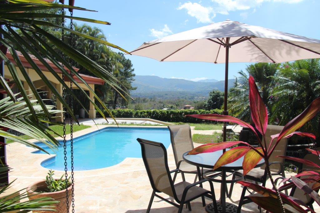 2 story family home with stunning mountain view, heated pool, air conditioning, alarm system, irrigation system, water tank, 20 minutes from San Jose international airport, 5 minutes from two international schools. 5 + 1 bedrooms, 6 bathrooms. Los Reyes gated community offers 9 holes golf course, 6 tennis courts, a gym, a large pool and restaurants.