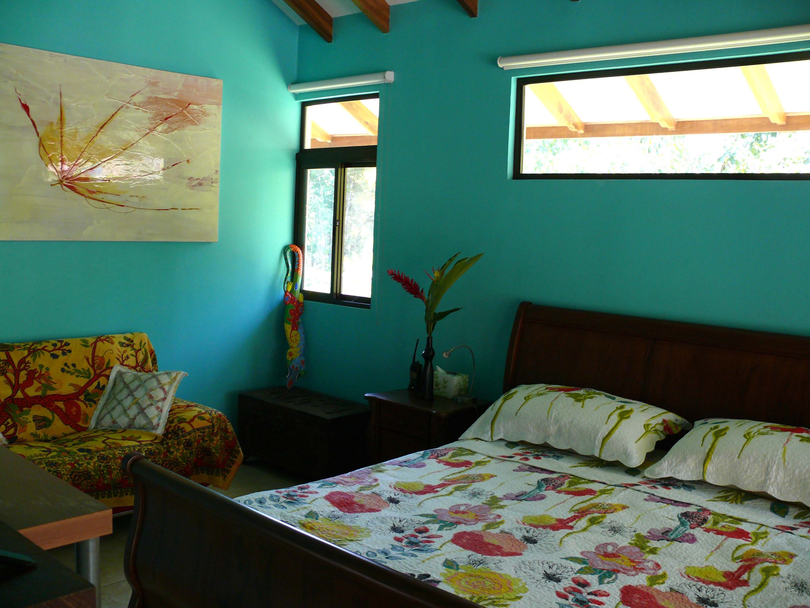 Two bedroom, two bathroom house nestled in the jungle on an approximately 1.4 acre lot. There is a loft that can be converted to a third bedroom, study or.... The house has a solar water heater, solar panels that feed into the grid, and a high-end backup generator. There is also an electric powered `dumb waiter` for your convenience. Ocean view, landscaped, fully fenced garden, with saltwater swimming pool. Two and a half years old.