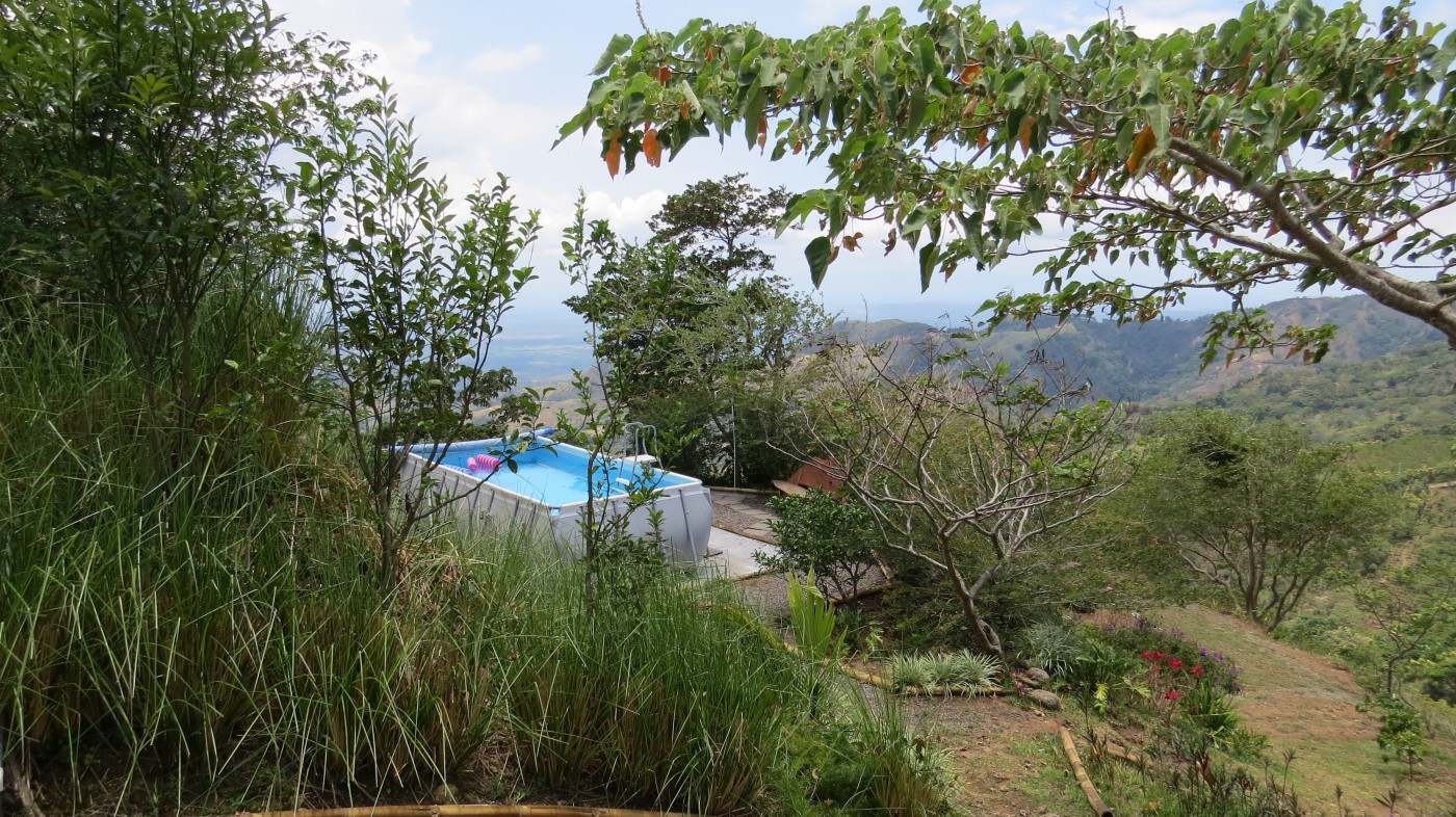 The property has 4 lots: 2 ready to build with driveway cemented to the lots, all services with excellent pure water from the mountains. The main lot include studio completely furnished (110m2), a greenhouse (60 m2) used for drying coffee and hydroponic culture, a closed area with an above-ground swimming pool (3m X 6m) and 2 flat areas ready to build 2 more studios (for rent). Also main house arquitect`s plan ready to build: 2 bedrooms, 3 bathrooms, garage and pool/Jacuzzi. The 4th lot includes space for warehouse and a new plantation of 1 200 coffee plants.