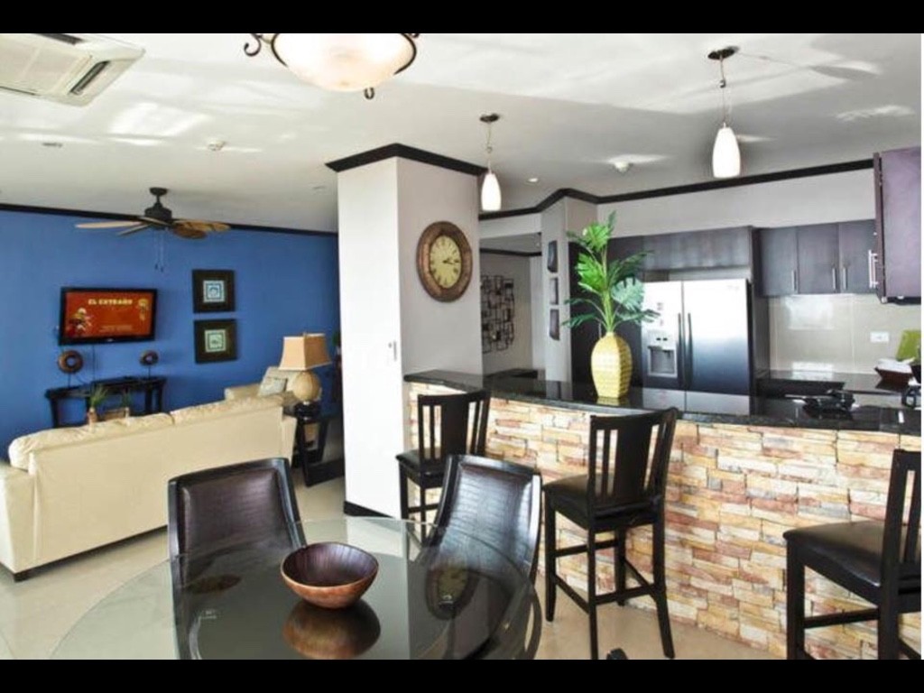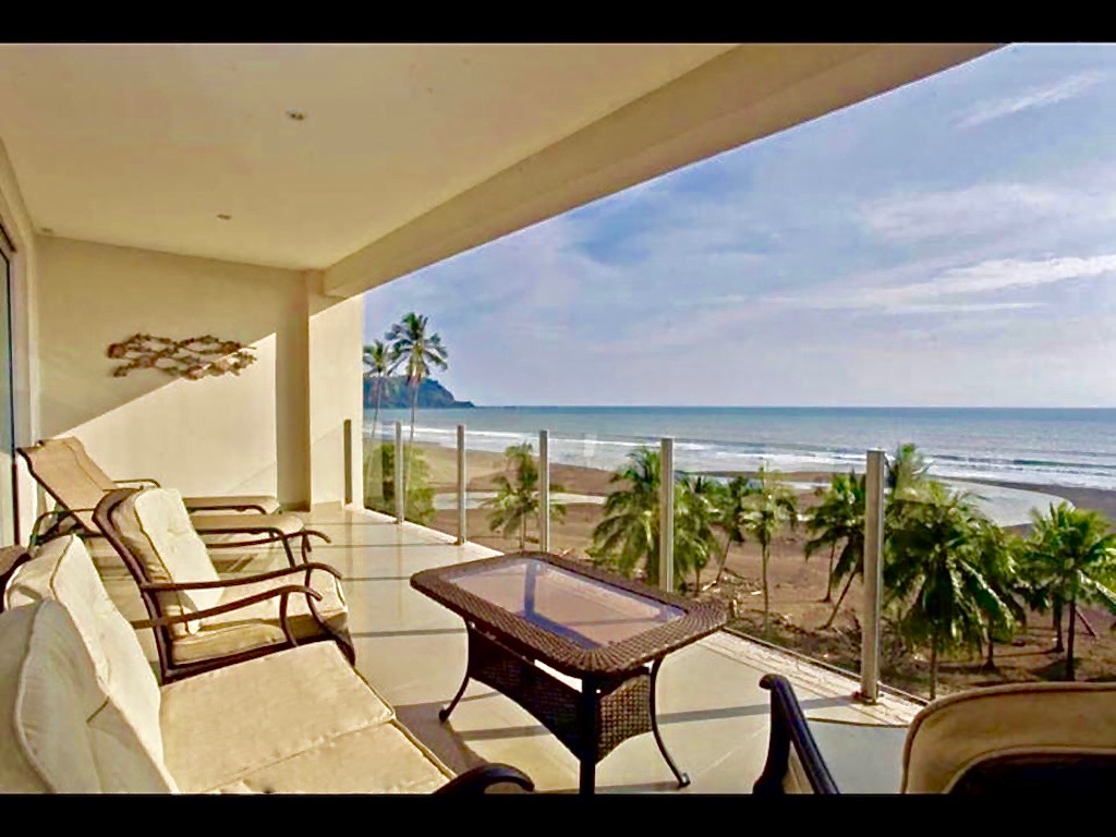 The luxury condo is a 2 bedroom, 2.5 bathroom, fully furnished, 1,500 sq ft vacation property located beachfront in the very center of Jaco Beach on the 5th floor of a high rise. Amenities include: gated community, luxury pool, stainless steel appliances, flatscreen TV`s, central and room AC, secured parking, 24hr guards, maid service, rental and management service.
