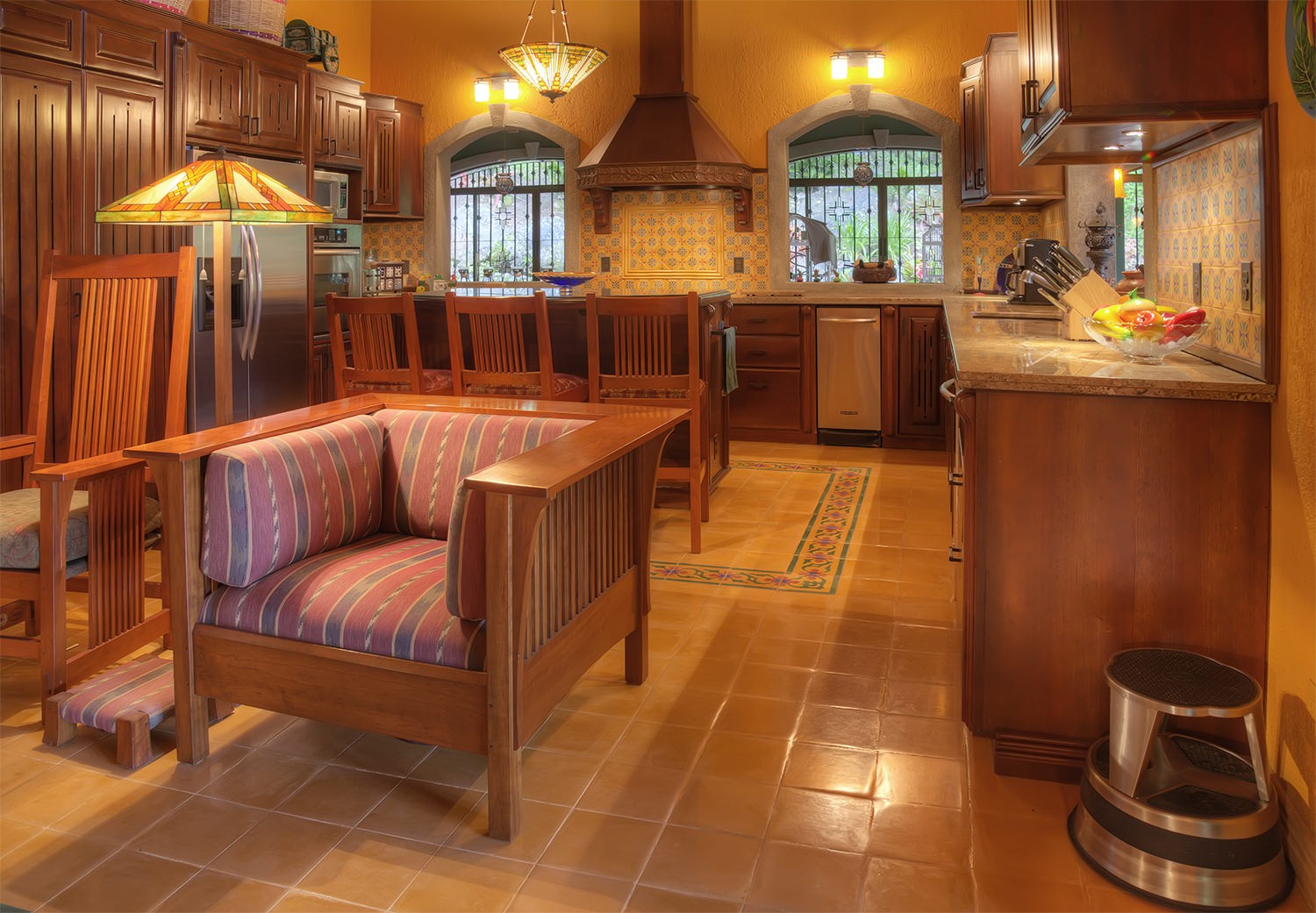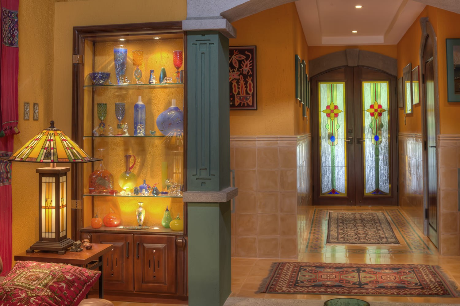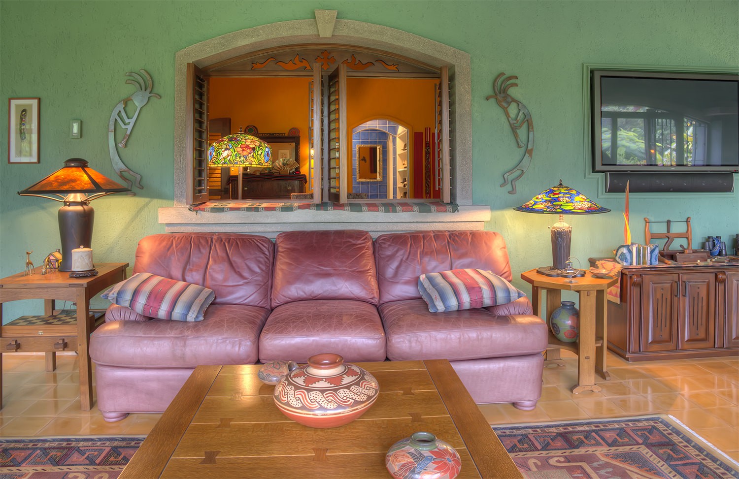made mosaicos title & stained glass doors & windows. 50` TV high definition with surround