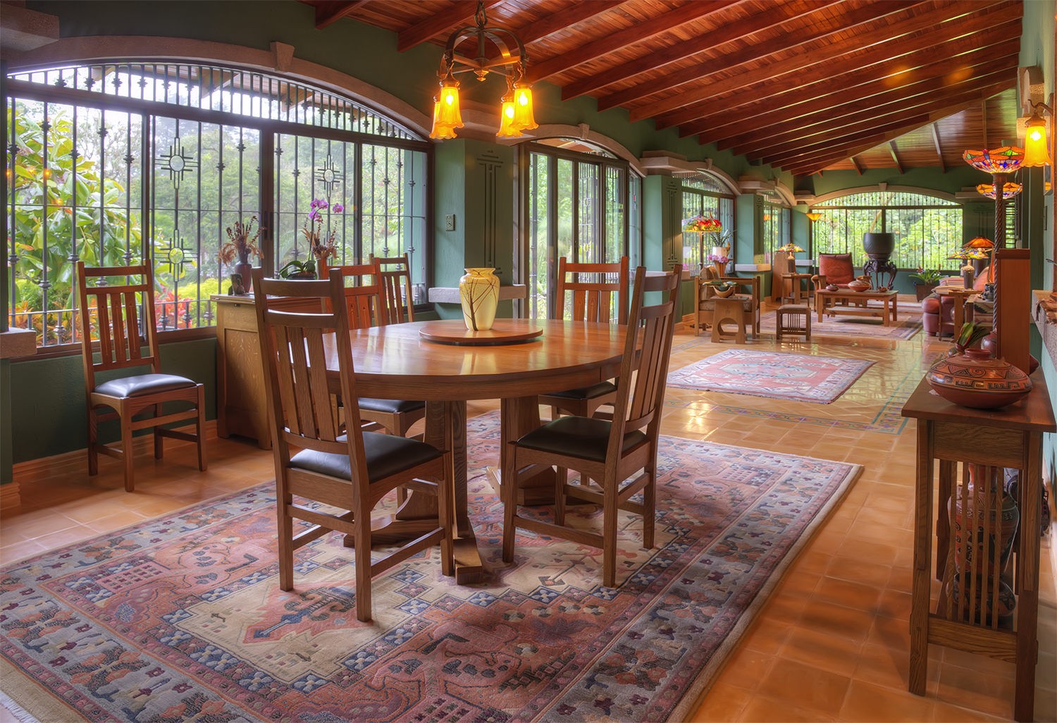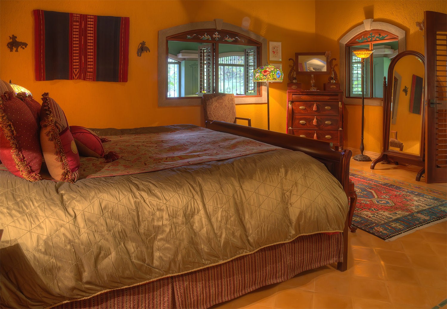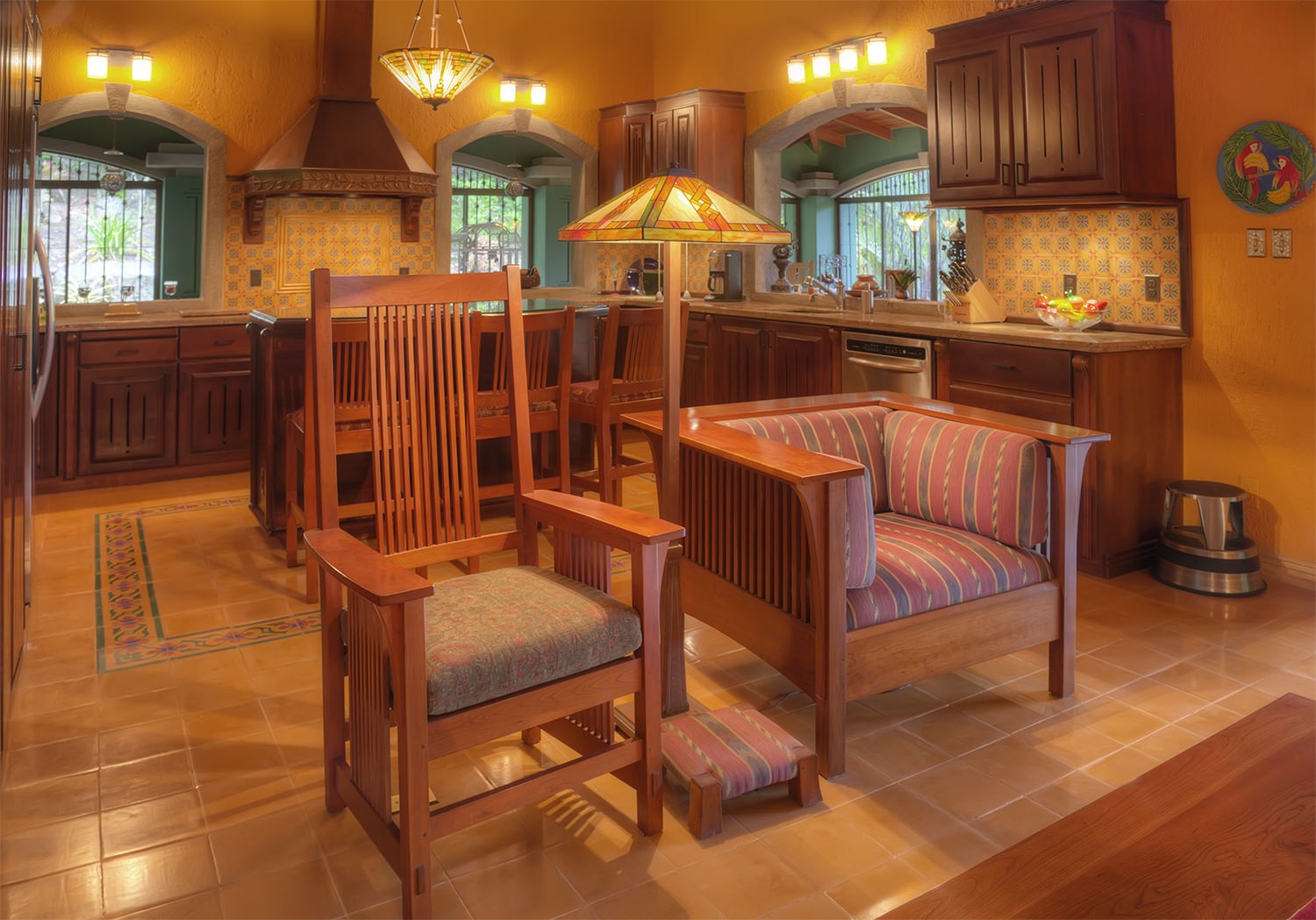 made mosaicos title & stained glass doors & windows. 50` TV high definition with surround