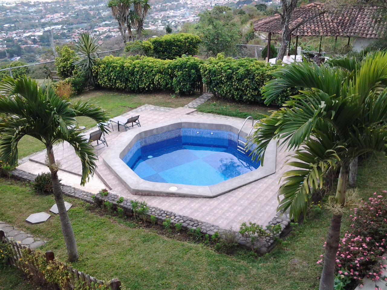 Beautiful three story country home, minutes to shopping ,country day school, malls, 15 minutes from Downtown San Jose and 35 minutes from International airport. Panoramic view of the city of San Jose. Large living/dining room with fireplace, kitchen with granite counter tops, breakfast bar. Impressive master bedroom suite with ample walk-in closet, Large balcony overlooking the pool, Large master bathroom, double sinks, granite counter tops, Jacuzzi. Every bedroom has its own bathroom and balcony overlooking the city. The third floor is an entertainment area with two terraces, bar, fireplace, perfect to create an amazing home theater.