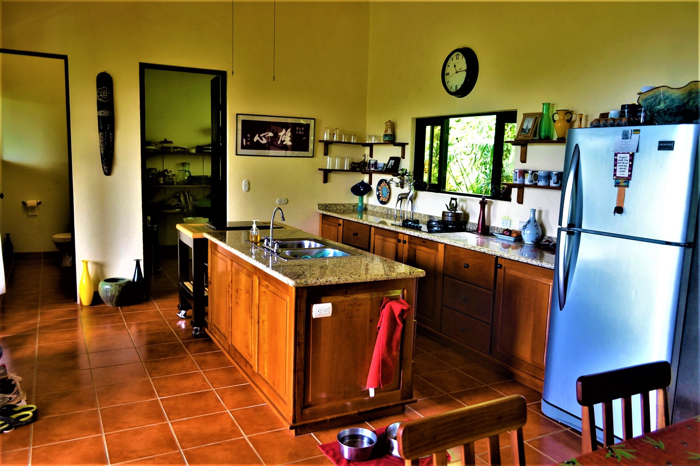 Beautiful hacienda in the hills with a wonderful ocean view. Located within a gated finca on one hectare (about 2 acres). The home is a 2 bedroom, 2.5 bathroom casa with a pantry, double carport, furnished and landscaped. Come enjoy the natural beauty of Costa Rica with fresh air, clean water amid a serene and peaceful environment.