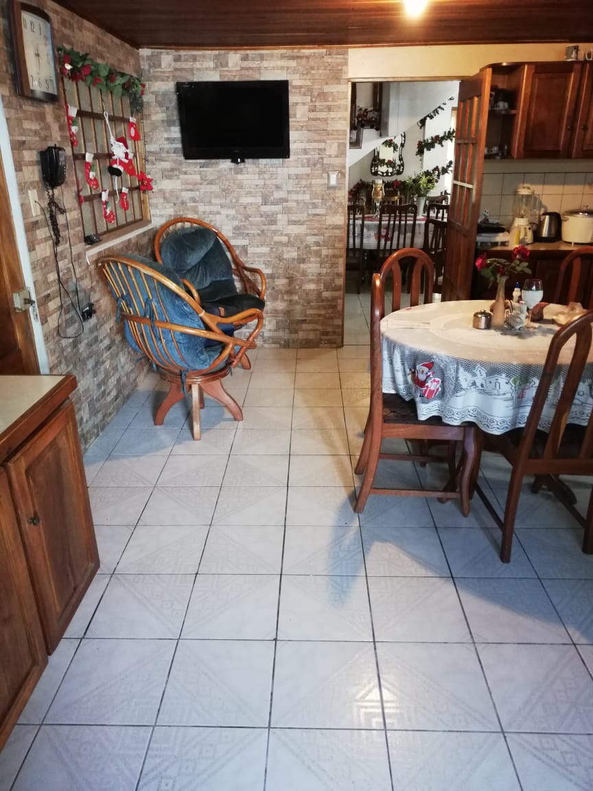 2 floors, garage for 2 cars, electric gate, 4 bedrooms with their respective wardrobes, TV room, laundry room, 2 bathrooms, one with tub, large kitchen, dining room and living room. It has a balcony, terrace, garden and backyard. It measures 232 square meters, water tank. It has ceramic floor, it has woods that can no longer be cut like Laurel and cedar.