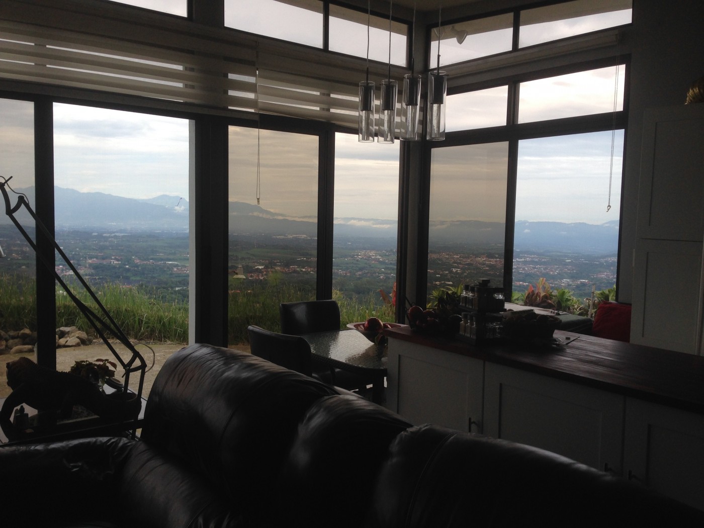 The house was built in 2016 and has 2 bedrooms and 2.5 baths. One of the bedrooms is upstairs and is actually an efficiency apartment with private entrance. The house sits in San Luis de Grecia at 4500 ft and has a 270 degree view of the central valley and San Jose. We are 45 min from the airport, one hour from the capital city of San Jose...