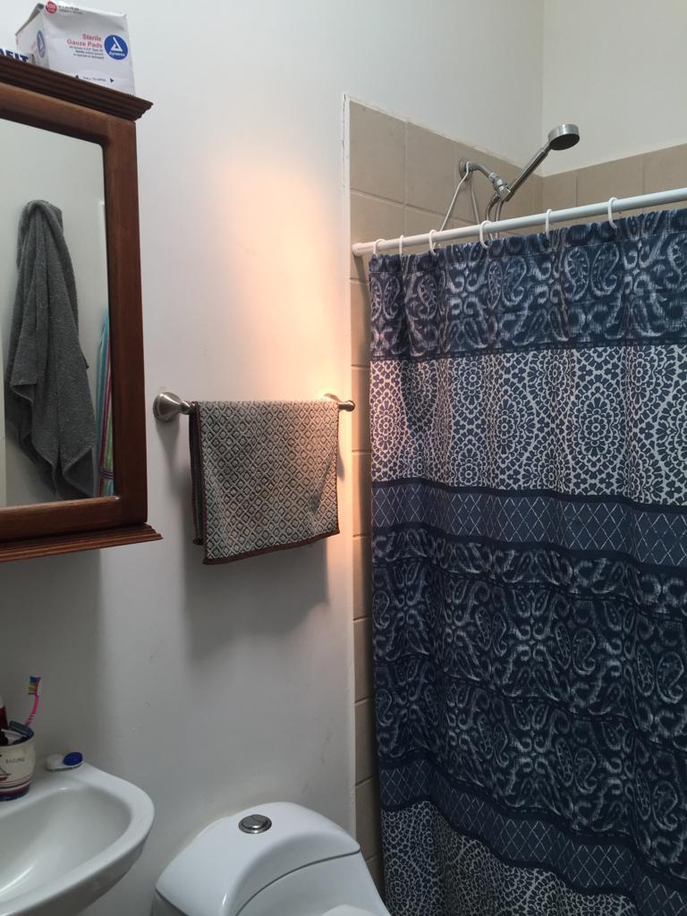 bathroom, backyard, two