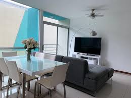Very nice, safe and comfortable apartment on the 12th floor in San José. kitchen area, dinning/living