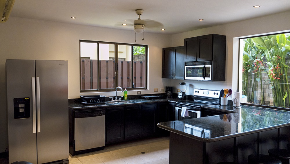 stove and oven, microwave oven, dishwasher, and various appliances including coffee maker, blender,