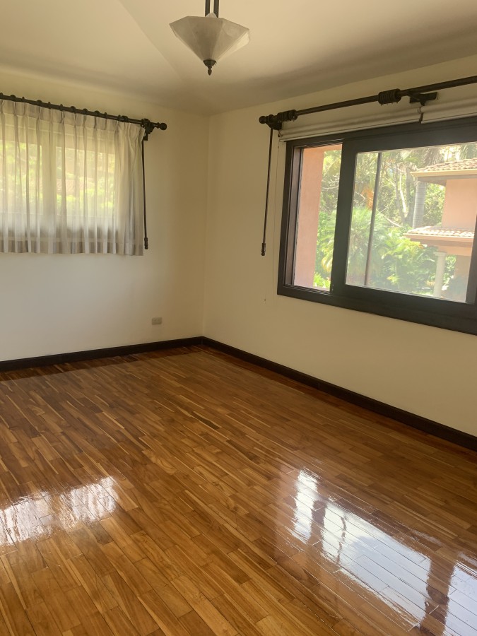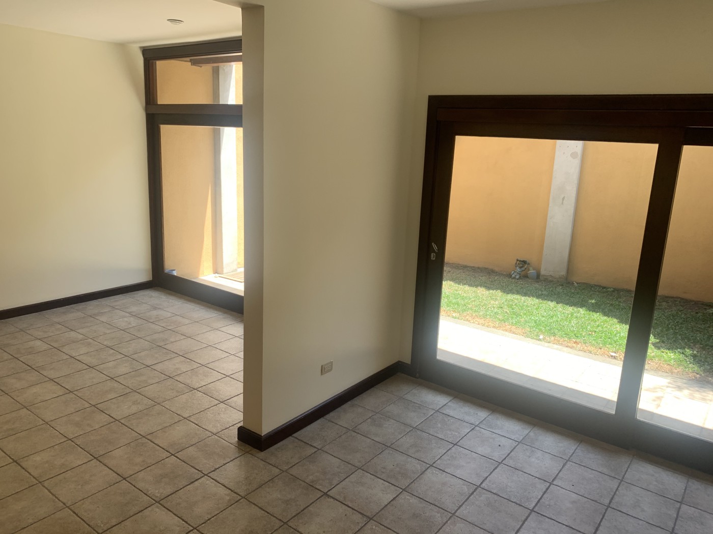 House for sale in condominium in EscazĂș. Comfortable corner house. In a quiet condominium with few units. It has a living room, dining room, separate kitchen and dining room, half guest bathroom, small terrace, patio area. Laundry room, maid room. T.v room, three good size bedrooms, the master bedroom with its walk-in closet and large bathroom. The two secondary bedrooms share a bathroom. Parking for 2 cars. Amenities: Pool, ranch and play ground.