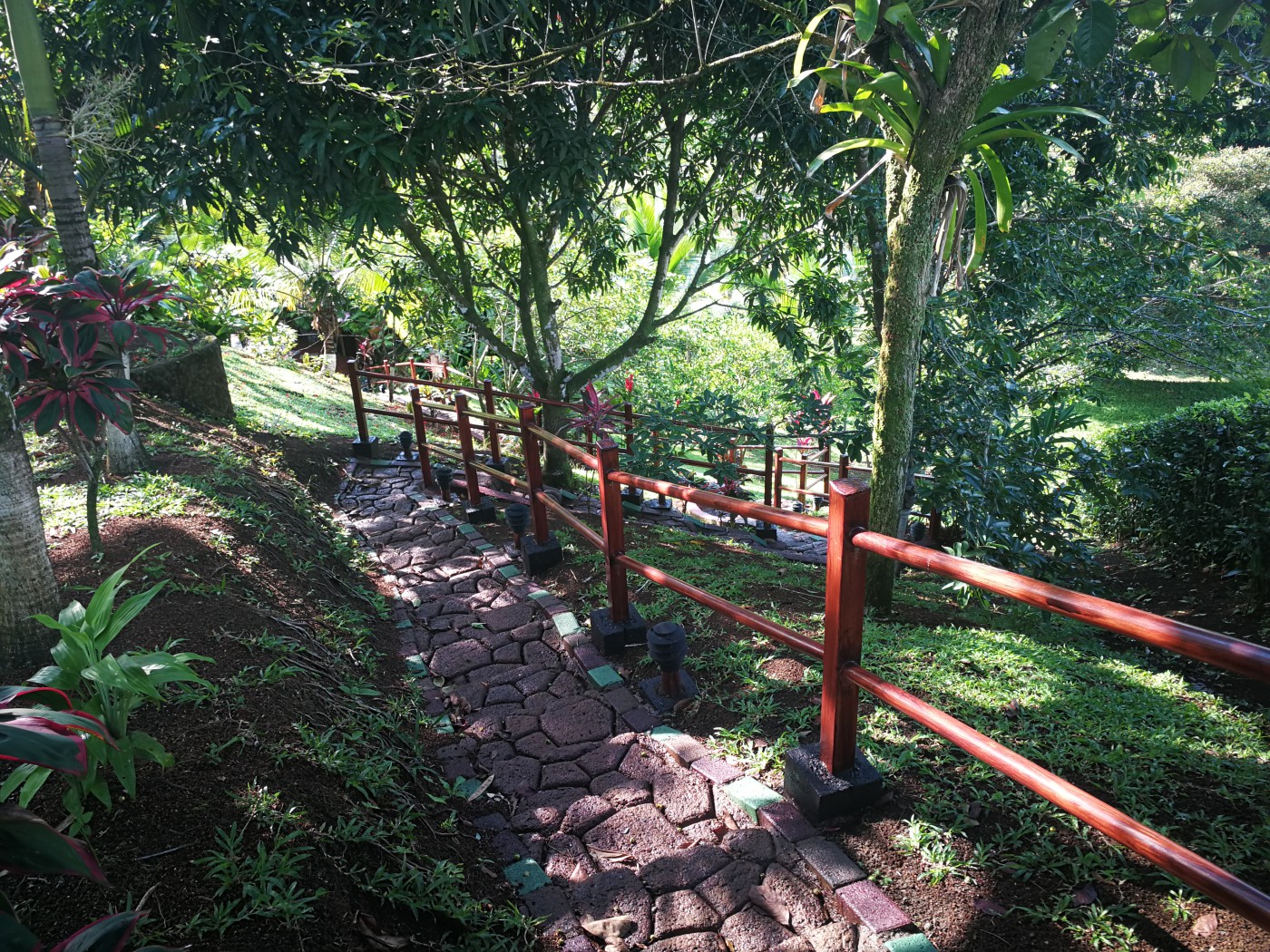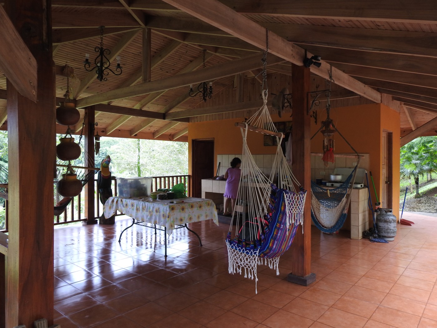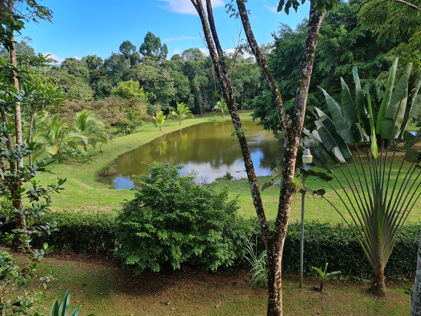 El ambiente es totalmente de campo, con exuberante naturaleza y en la parte de atrás, tiene una excelente vista panorámica hacia una laguna (no pertenece a la propiedad), las cual es visitada por patos, Tortugas, Garzas. También se pueden apreciar Tucanes, Lapas o Guacamayas y todo tipo de aves y se oye siempre el sonido relajante de un río limpio que bordea las propiedades.
