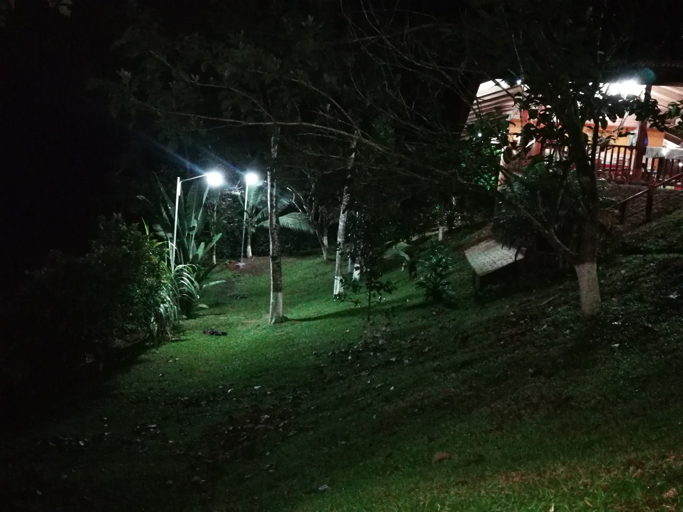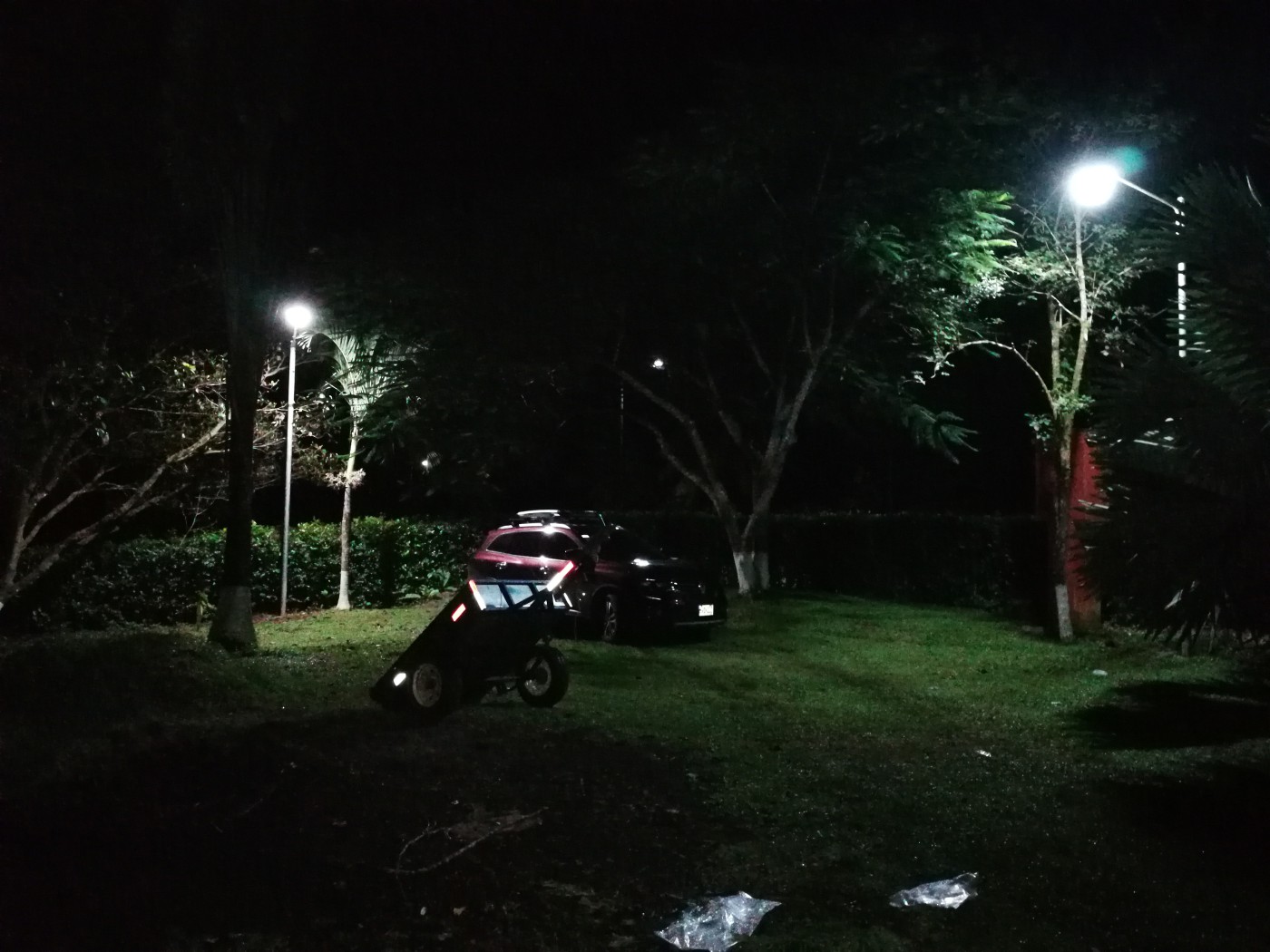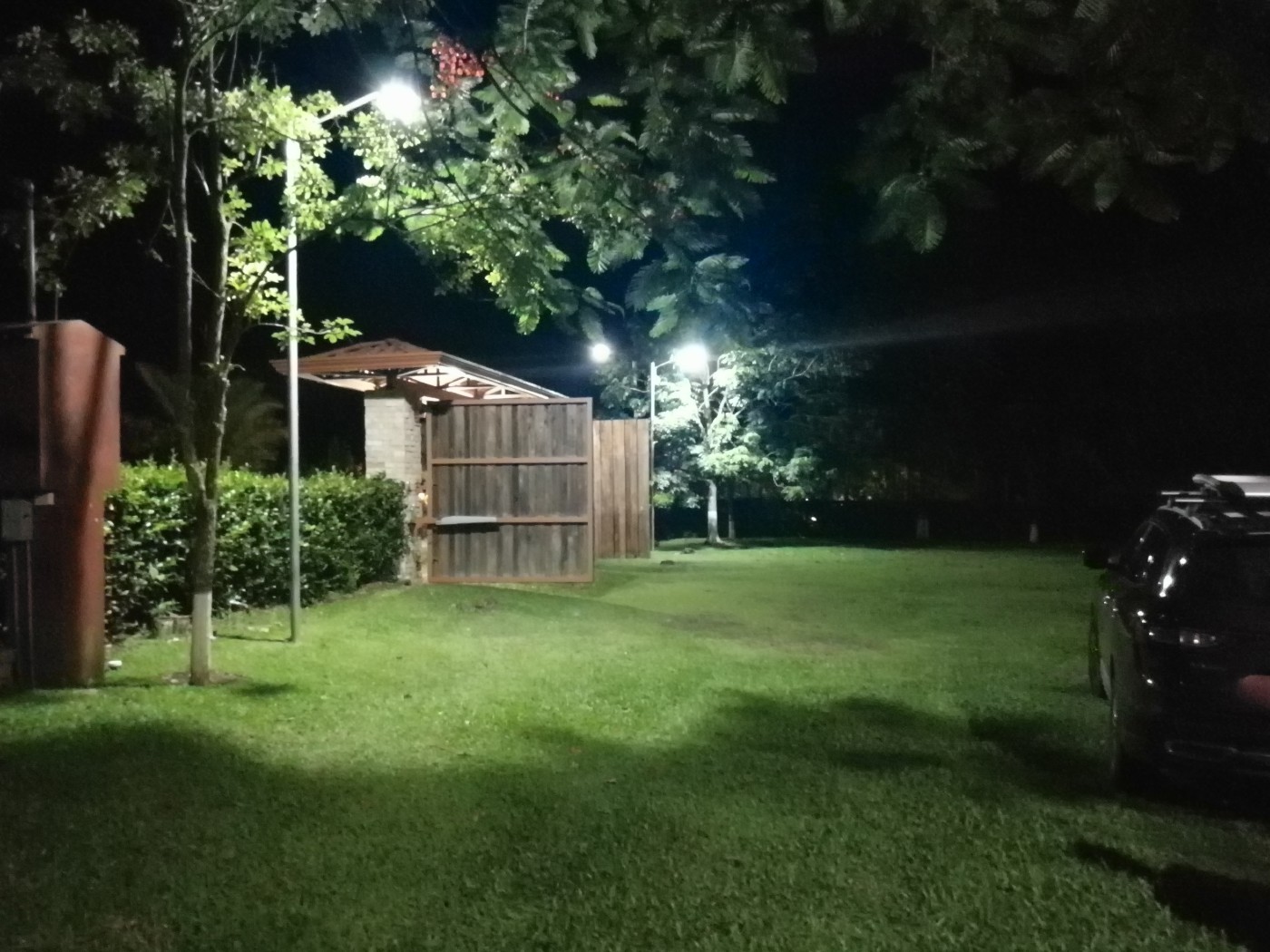 El terreno está bien iluminado de noche, con 9 lámparas de iluminación exterior. Las gradas que están en el lote también poseen iluminación.