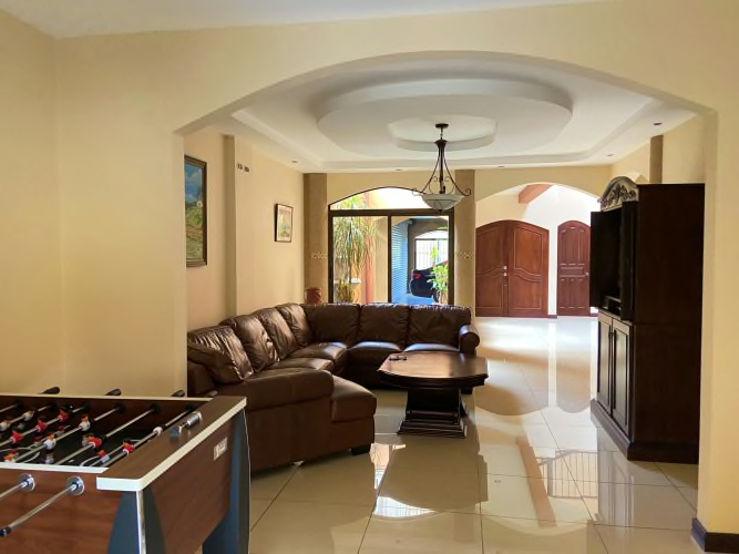 Large garage for three cars with electric gate, internal garden with fountain, beautiful and spacious front corridor, large living-dining room, kitchen with furniture and breakfast room, laundry room, spacious terrace and patio. Upstairs, TV room, four bedrooms, 2.5 bathrooms (1/2 bathroom on the ground floor and the other 2 upstairs), one of them includes Jacuzzi and walk-in closet in the master bedroom.