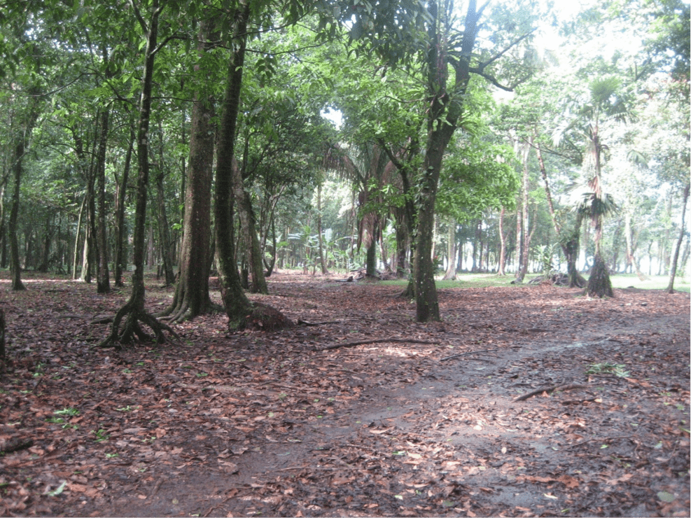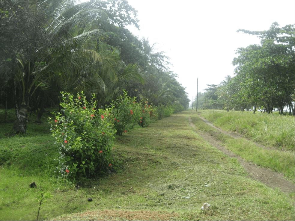 meters wide by 650 meters long, limited by the beach of the Caribbean Sea at one end (East) and the