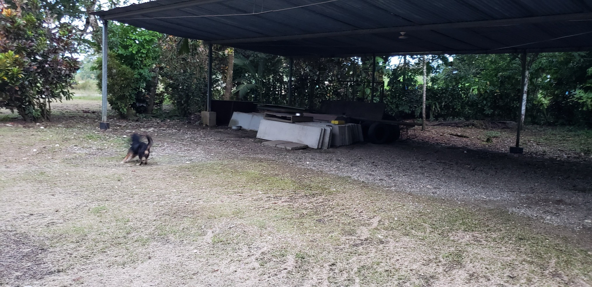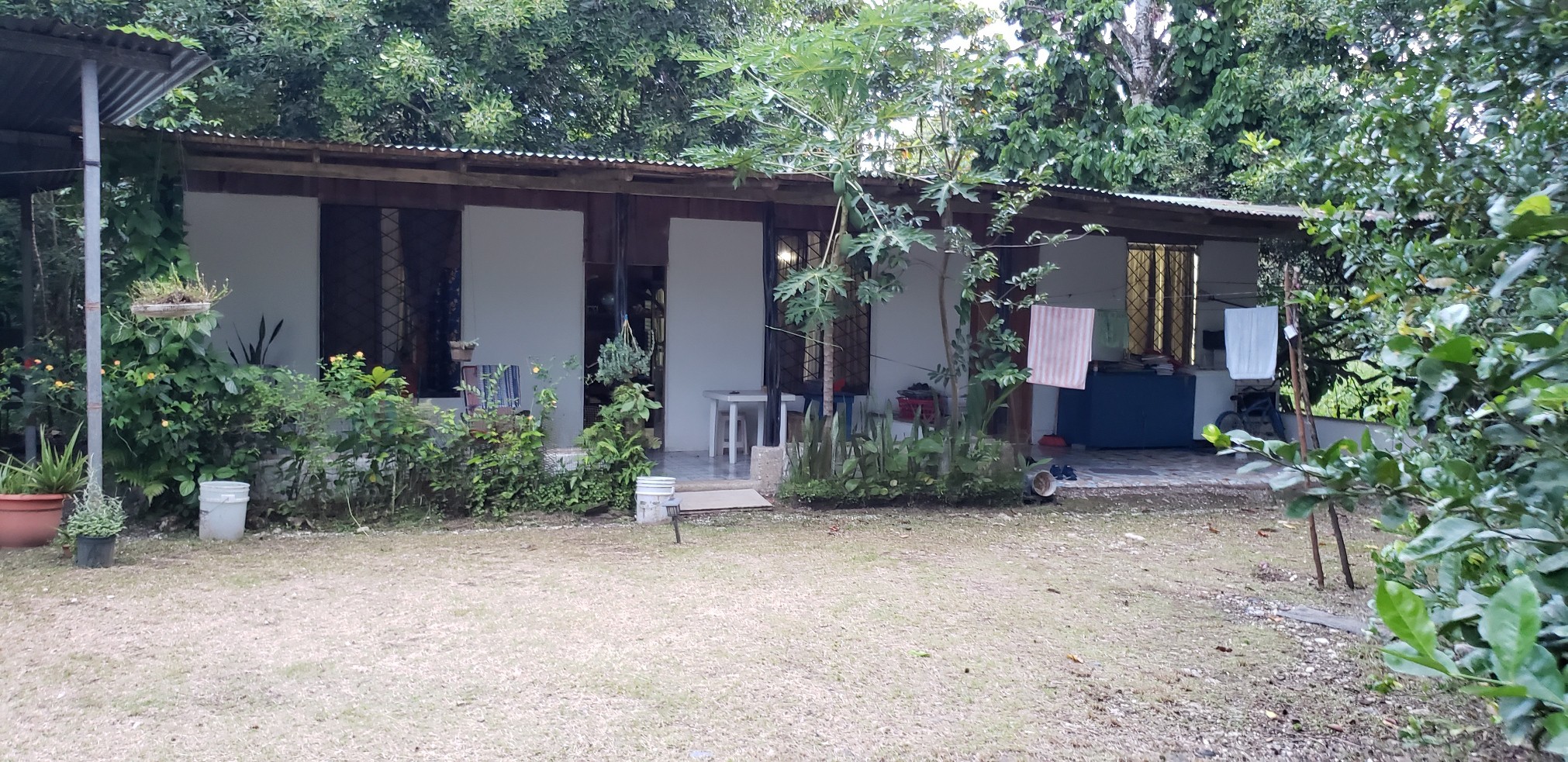 Terreno de 2320 metros con casa habitable de 3 cuartos, cochera bajo techo, corredor, cuenta con angar para avioneta, esta situado en rio claro de golfito, puntarenas, contiguo a campo de aterrizaje. cualquier informacion tiene plano y carta de venta. y se ha vivido aqui los ultimos 20 aƱos. hay varios arboles frutales.