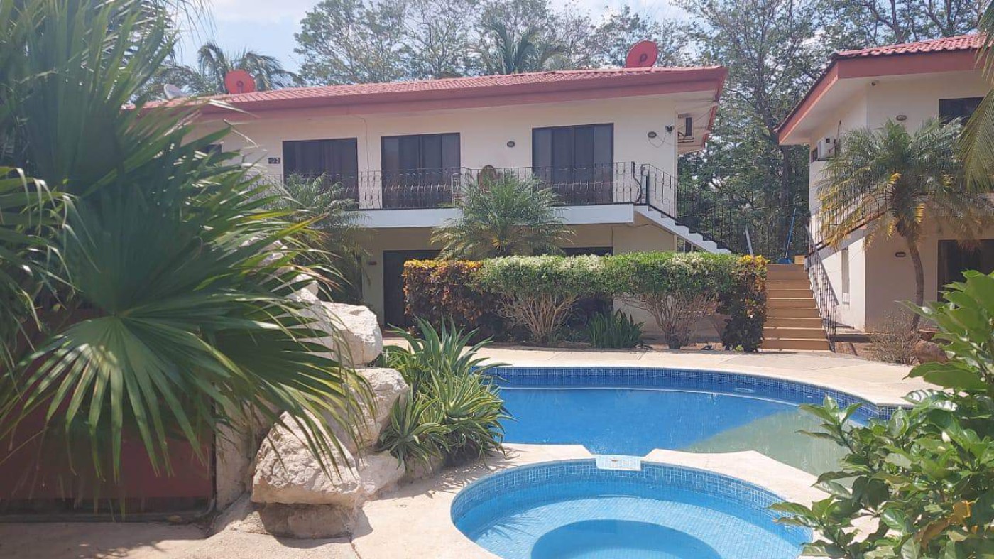 Cocos Oasis is a small gated community of 8 apartments, 1 of them available for sale. It has a nice swimming pool and a ranch into a delightful & peaceful green place, near lots of amenities, but outside of town.