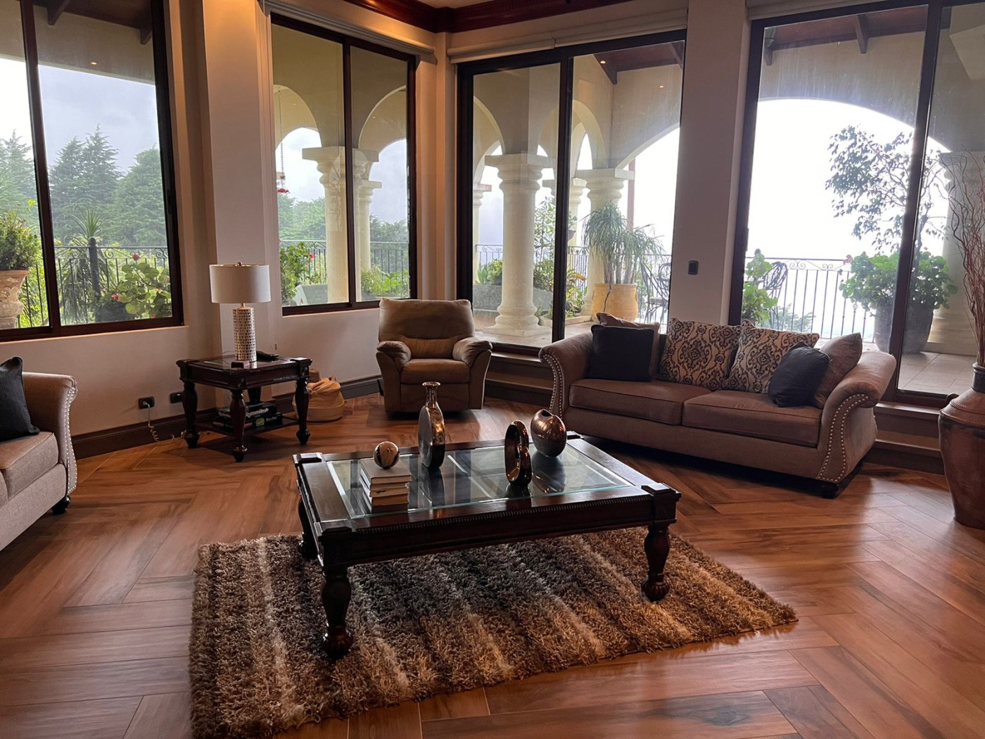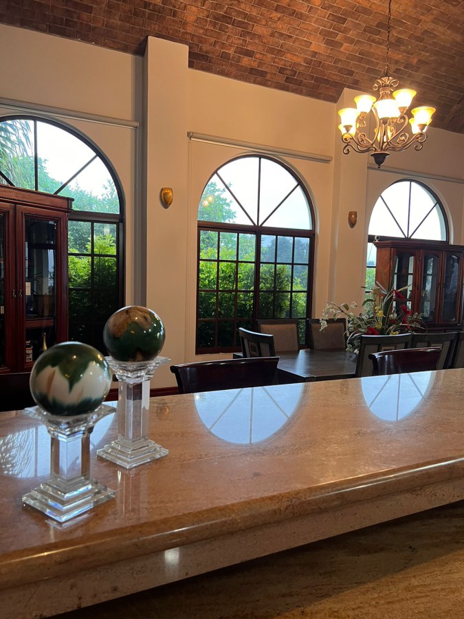Mountain Essence with luxury and comfort. This two-level home is a hidden gem in Santa Barbara de Heredia, with a great mountainside location and panoramic city and forest views. Boasting a grand design with vaulted ceilings and spacious areas, The Mountain Essence Home offers refreshing entertainment area and a large 7-bedroom private area distributed on both levels, with the master bedroom on the main level. Arches, round columns and brick detailing are just some of the unique finishes the house features. The 1.85-acre property includes landscaped gardens and a small private lake.
