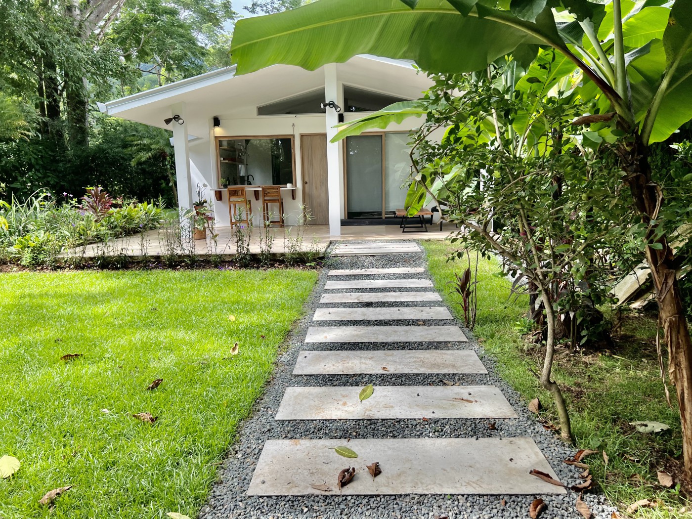 private tropical garden setting! Property also features lush jungle river access with a fire pit overlooking gentle stream.