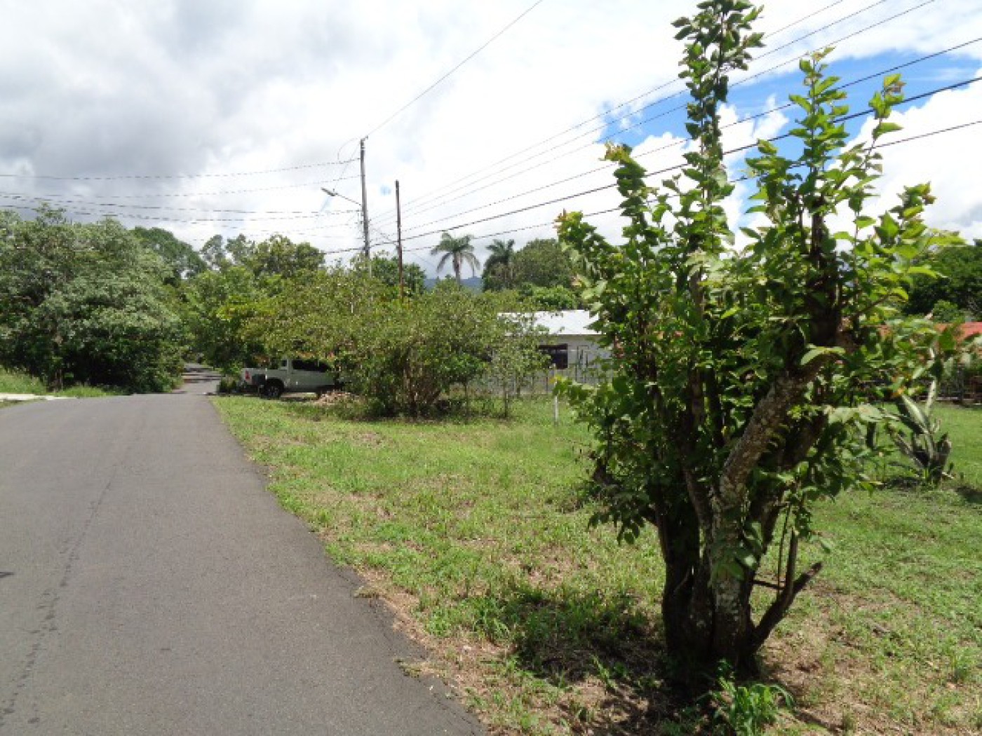 Facing a paved road, just 100m from the bus stop.