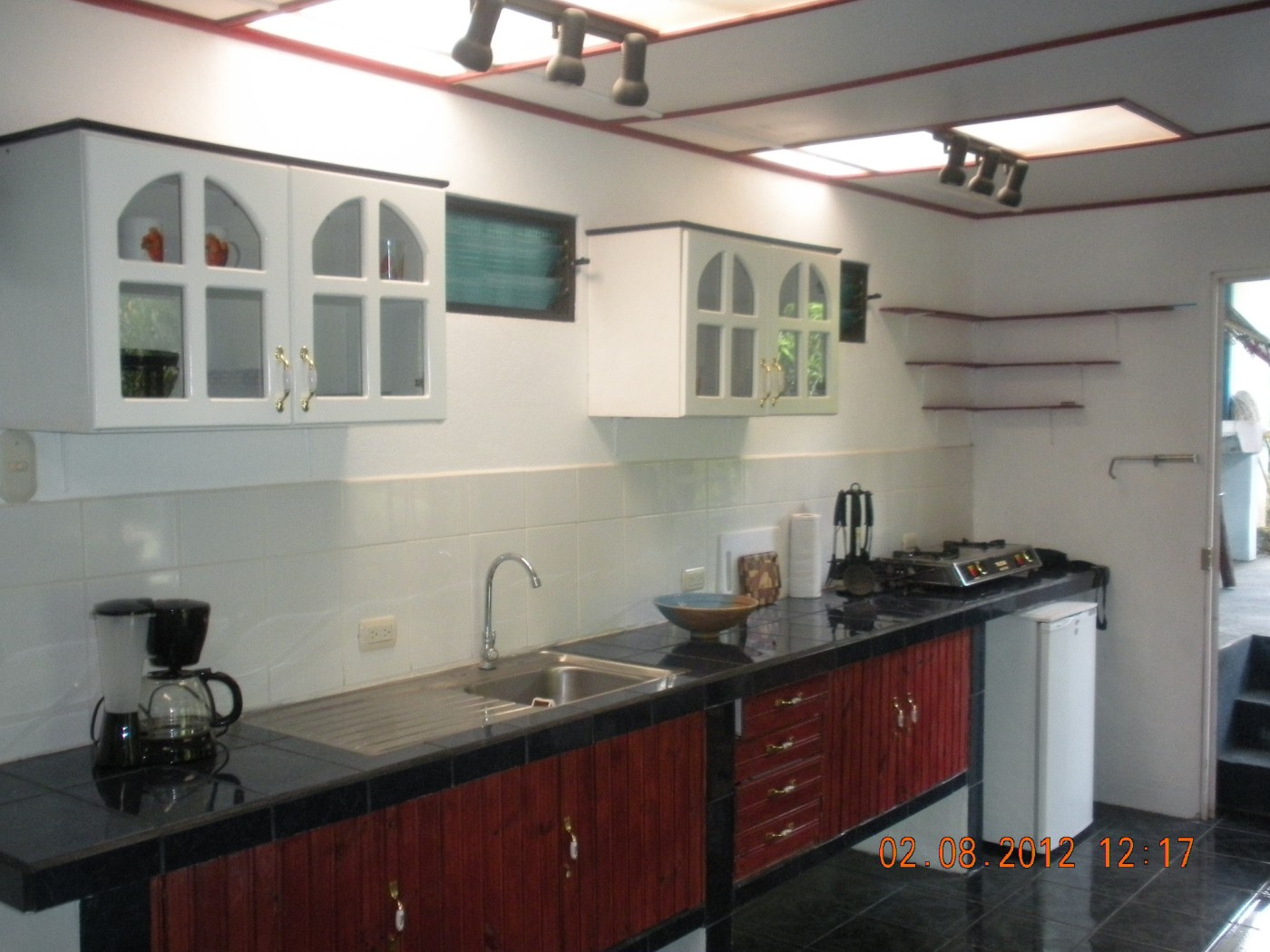 THE THIRD HOUSE IS A LARGE, ONE-BEDROOM HOME, WITH A BIG LIVING ROOM AND KITCHEN INCLUDING NEW STOVE, REFRIGERATOR, ALL TILED COUNTERS AND FLOORS, BEAUTIFUL CABINETS, A BAR, AND OPEN PATIO. THERE IS ALSO A LARGE STORAGE (BODEGA, AND WASHROOM). A LARGE SECOND PATIO IS LOCATED NEXT TO THE RIVER. THERE ARE BEAUTIFUL GARDENS THROUGHOUT...MANGO, PALMS, ORCHIDS, LEMON, AVOCADO, ETC.