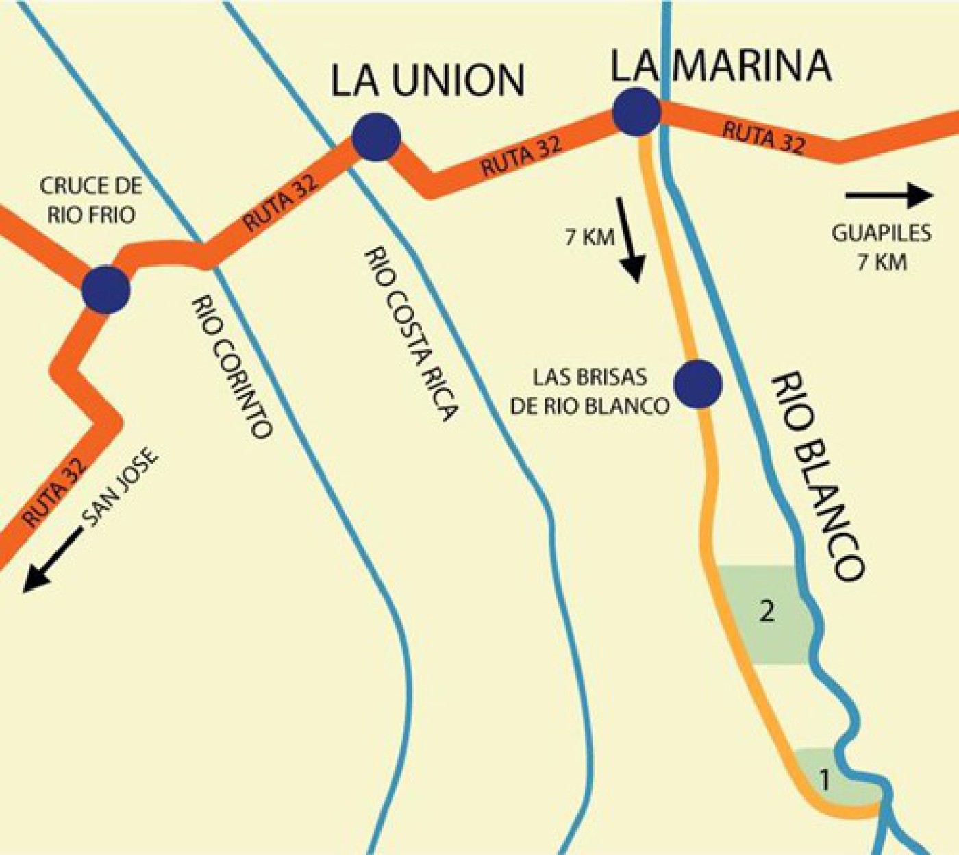 Great deal! We are selling ( by owner ) two adjacent beautiful lots ( total: 1,3 has ) on the Caribbean slope in Las Brisas de RĂo Blanco near Guapiles Town. Both lots have riverside ( Rio Blanco ) and are surrounded by rich rainforest and great views of the Turrialba Volcano. Great birdwatching! Excellent for a rainforest house or cabin!