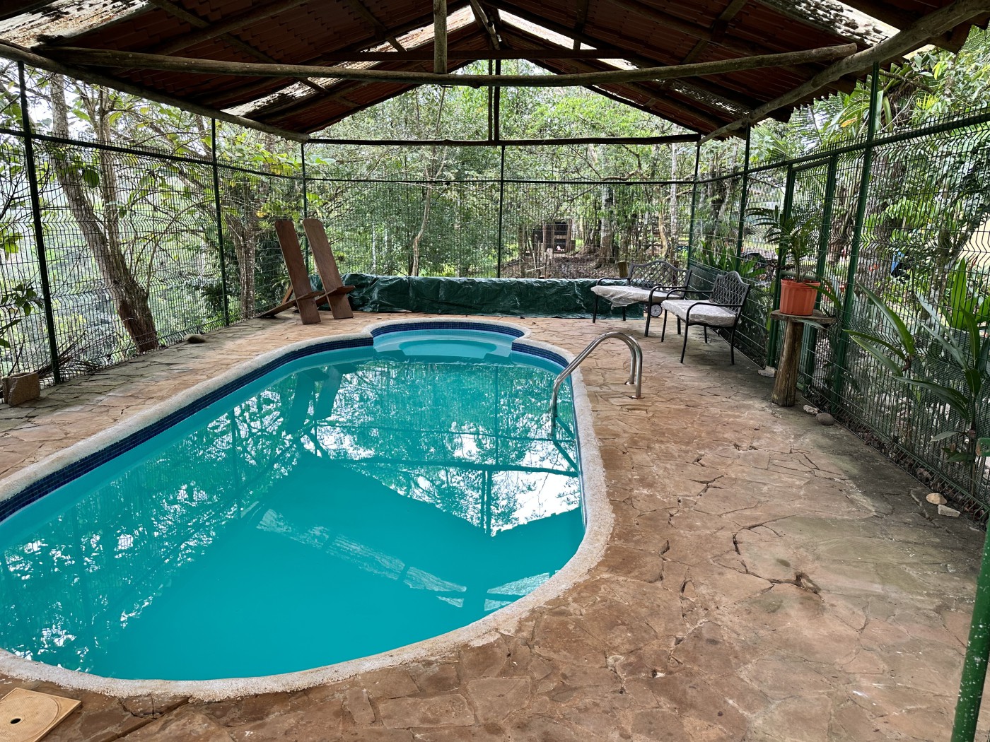Nestled within this vast 14,000 m2 farm lies a charming rustic two-story cabin offering an idyllic retreat. The property features a delightful swimming pool complemented by a relaxing jacuzzi, a welcoming pergola for shaded relaxation, as well as a corral and enclosure for bird habitats.
