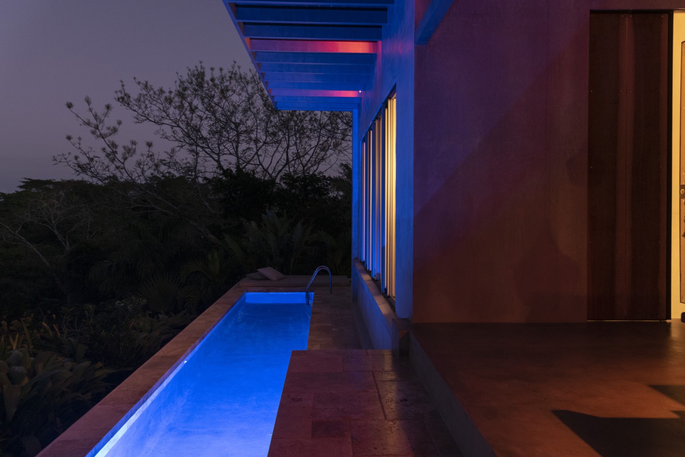 Situated on 2.58 Acers this home is 3067.71 sq ft (285m2) with 2 bedrooms both with ensuite bathrooms, one with a custom tub the other with a shower and a 2 piece bathroom on the main floor. There is a fully equipped kitchen, office and 2 living room space, one on the main floor the other on the second floor. 180 degree jungle and ocean views and a 12.5 meter long lap pool top completes this beautiful home.