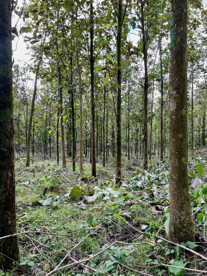 Farm is 68 hectares with 35 of Teak 12 yrs old, and 15 hectares of Melina, rest forest,.