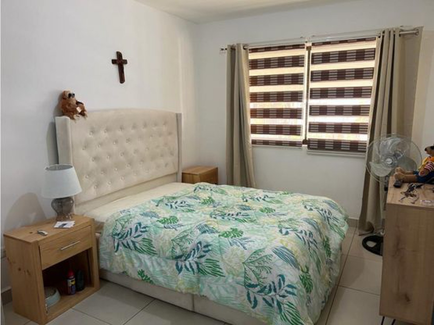 curtains, and blinds. The ceiling is 4 meters high, providing ventilation and natural light. Situated in a