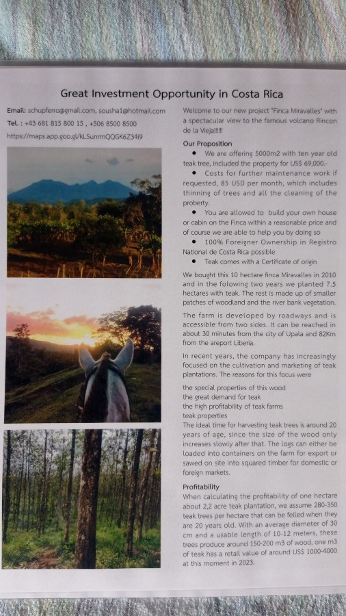 Our average selling price for 5000m2 of ten year old teak including maintenance is US$69,000.