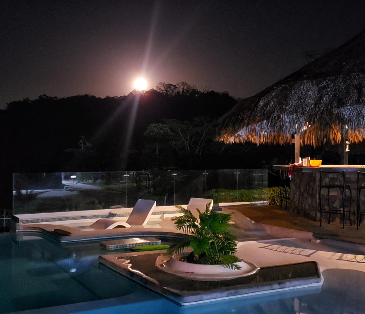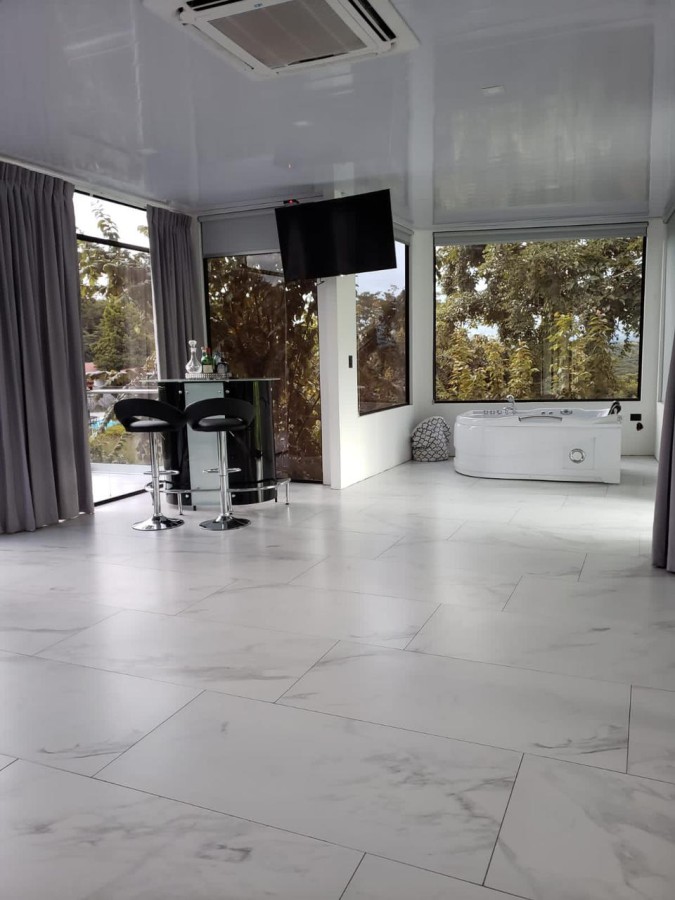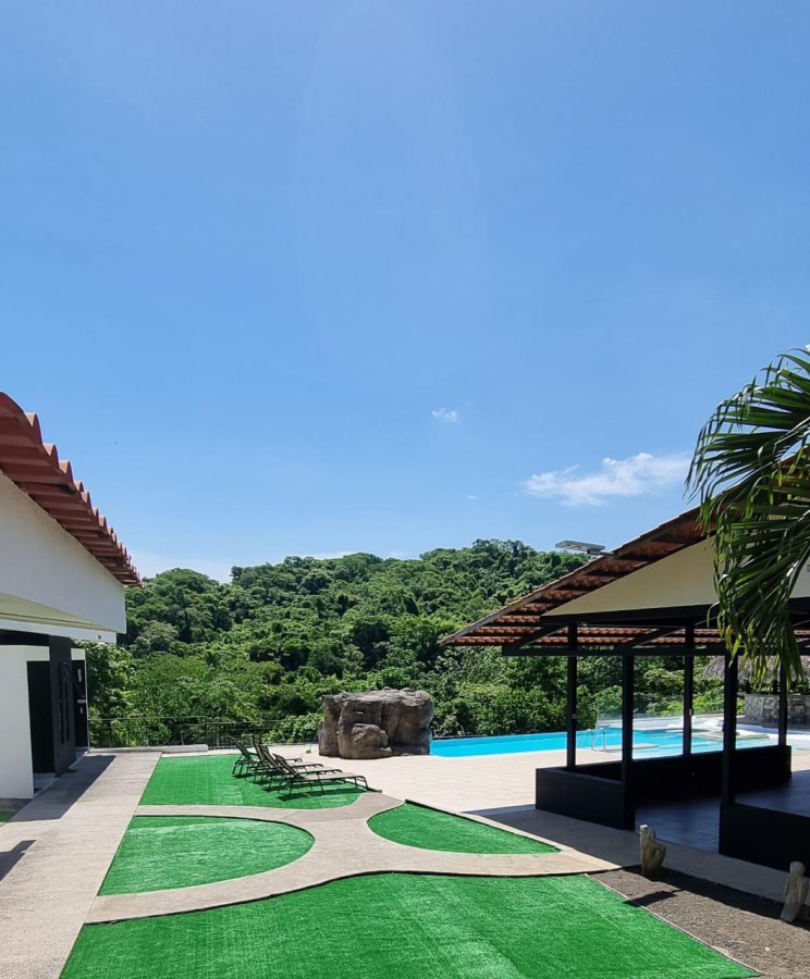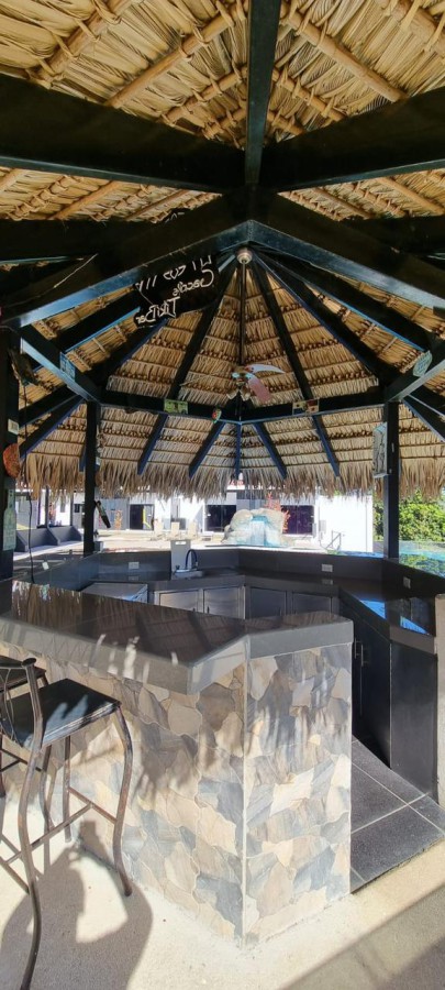 Also a big living area, grill, adult pool and kids pools, tiki bar,
