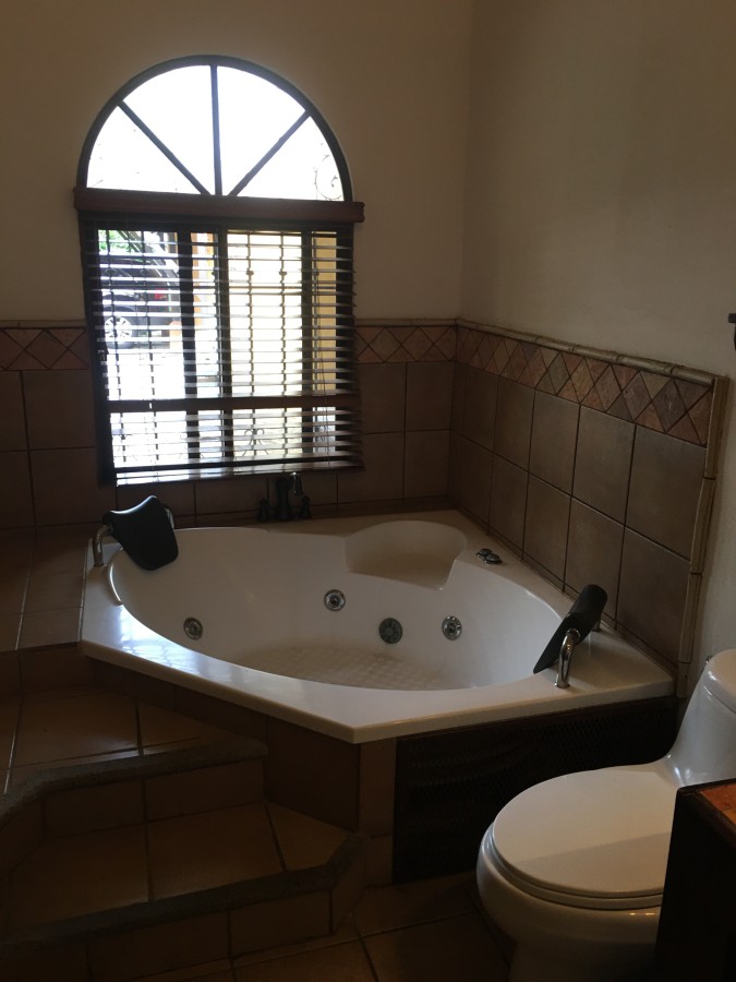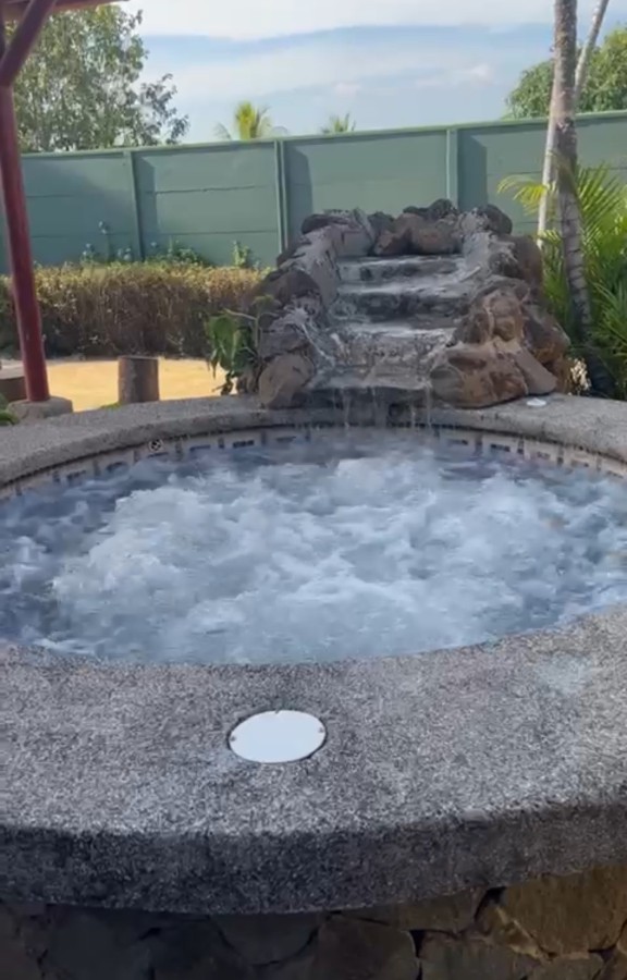 Jacuzzi al exterior para 6 personas, con cascada y un sistema de calentamiento solar.