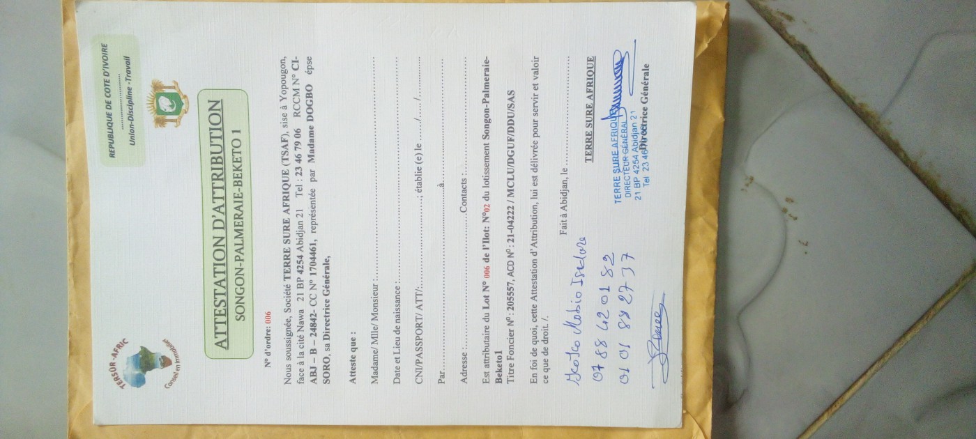 Land located on the edge of the highway going to dabou Area: 700m2 Price: 70 million Non-negotiable Inhabited area: water, current Nb: a very good ground for a convenience store, a hotel, a bakery, a station, house for sale, rental