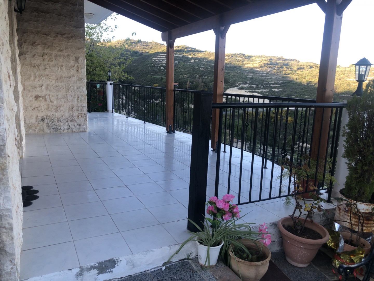 Detached three bedroom house in a beautiful area with a fantastic view The house is situated in a peaceful area surrounded by nature. The ground floor consists of a big living room with separate kitchen and fire place big bedroom with big covered veranda and ensuit shower with extra toilet.The first floor has another two bedrooms with balconies fantastic mountain view and family bathroom.