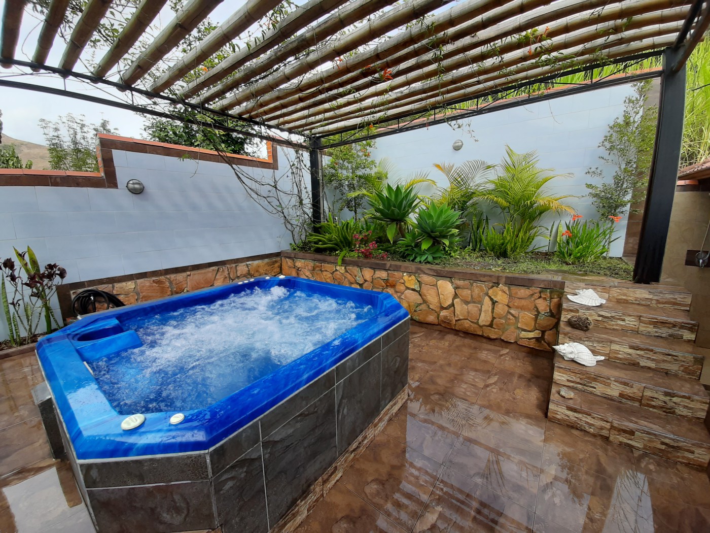 behind the house, small workshop. There is a large, enclosed spa area with 5 persons