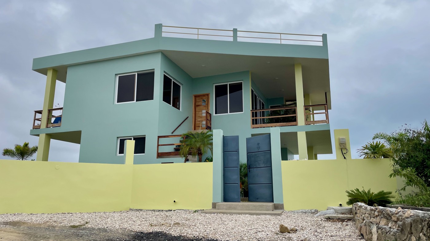 Discover the stunning property of Casa Verde, nestled on a hilltop with incredible 180 degree sea-front views. Enjoy the yearly humpback whale migration from the comfort of your balcony. The property is surrounded by lush tropical trees and grass, offering a serene and picturesque environment.