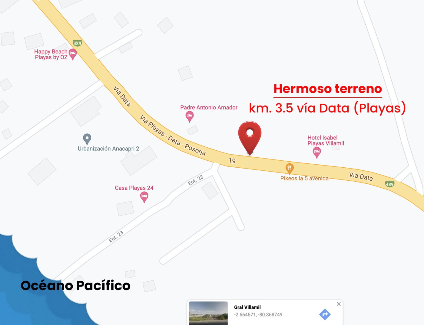 Hermoso Terreno en Vía Data de Playas