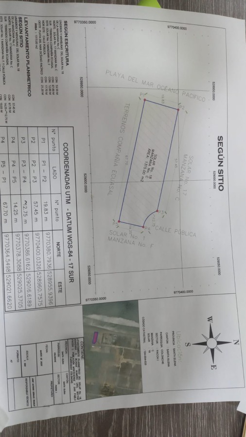 Property details: - Location: Playas de Pacoa, Santa Elena, Ecuador - Type: Plot of land - Size: 1,315 m² - Features: - 19.83 meters of direct beachfront - Excellent location with easy access - Just minutes from Montañita
